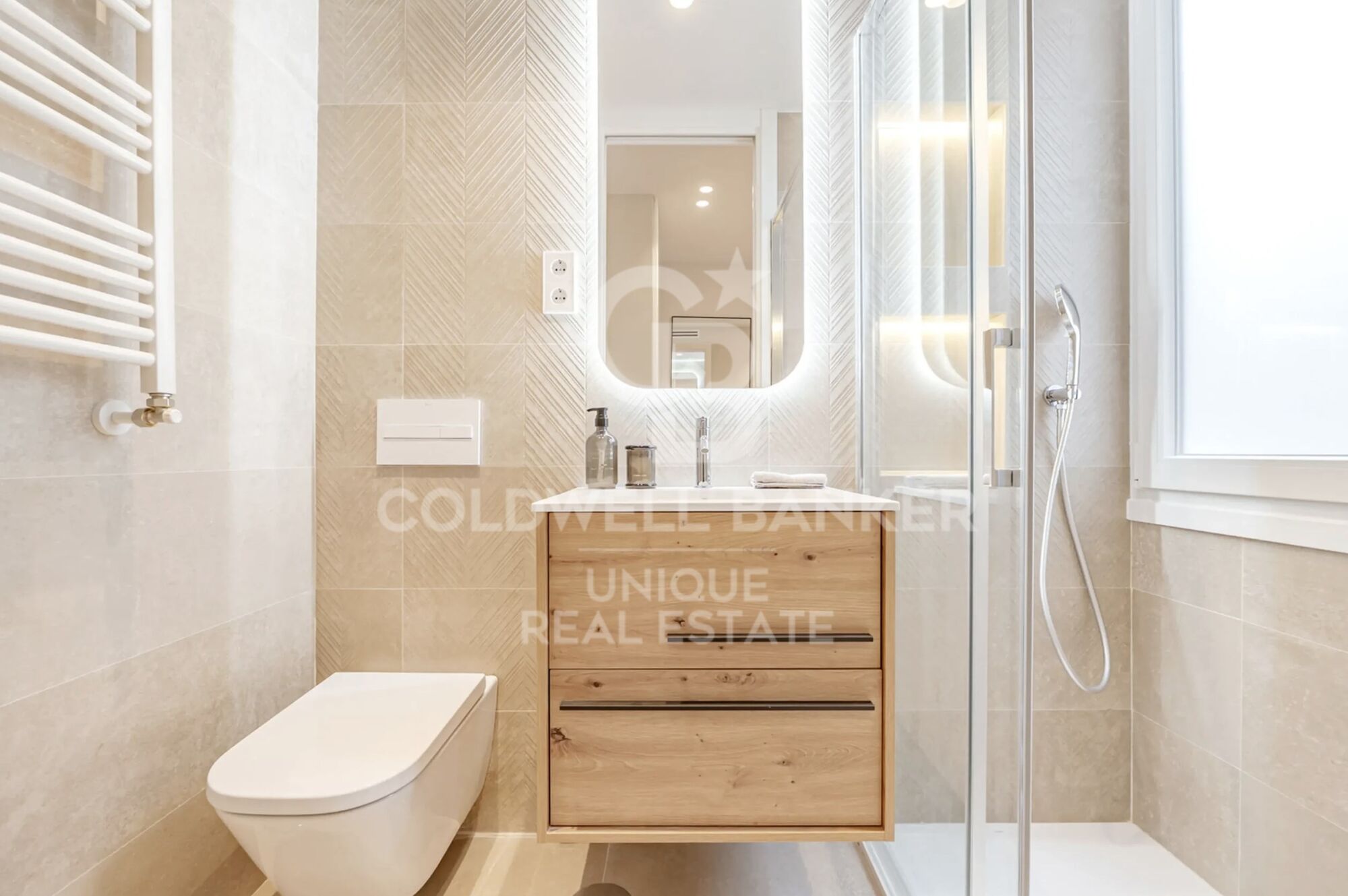 Die Aufteilung umfasst zwei Schlafzimmer, eines davon en suite, sowie ein weiteres vollständiges Badezimmer und einen praktischen, separaten Hauswirtschaftsbereich, was Komfort und Funktionalität im Alltag gewährleistet. Jeder Raum wurde so gestaltet, dass maximaler Komfort erreicht wird, ohne auf eine moderne und elegante Ästhetik zu verzichten.