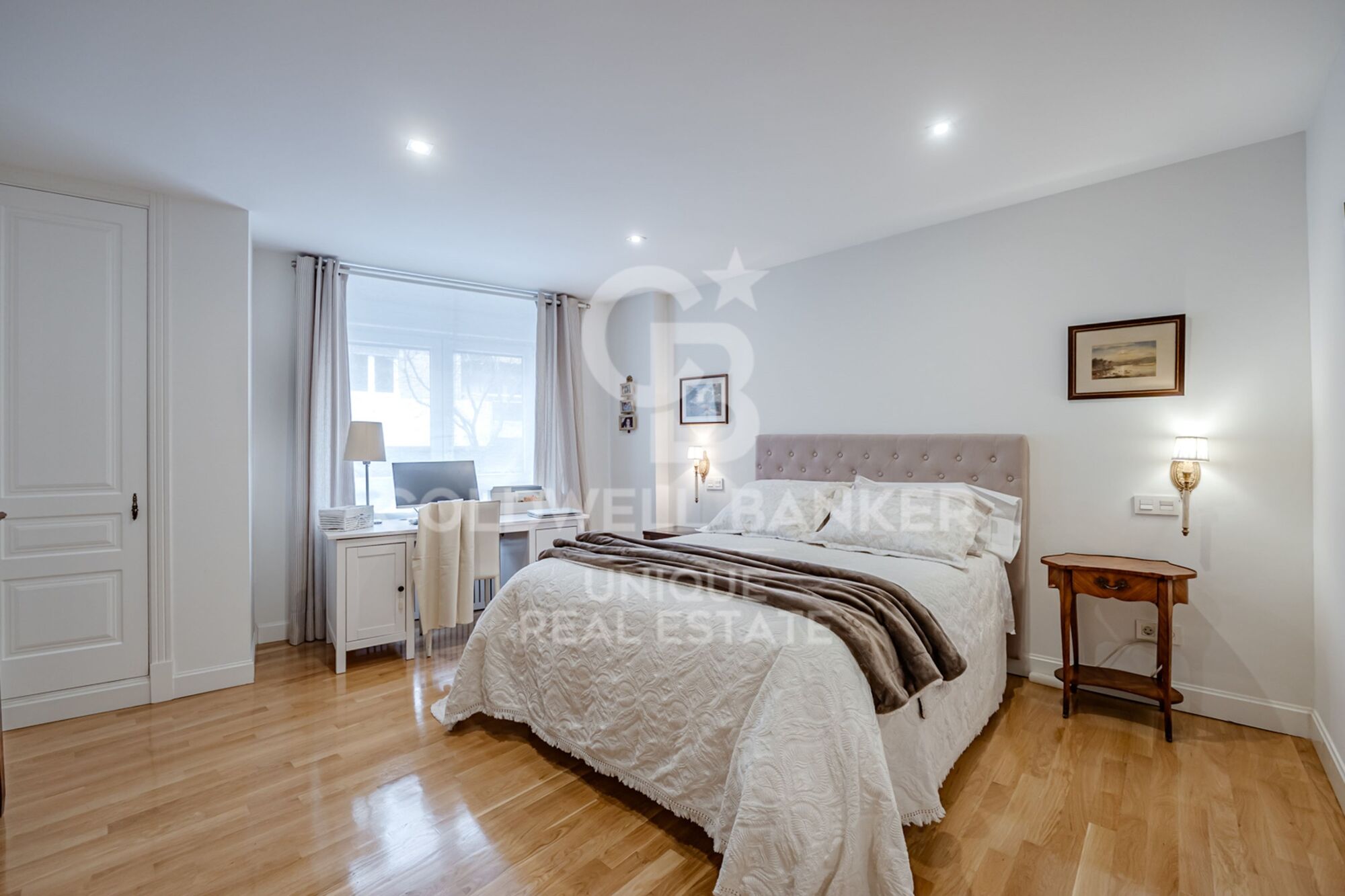 Der private Bereich des Hauses ist durch einen Flur organisiert, der zu einem Einzelzimmer, zwei Doppelzimmern und zwei Badezimmern führt, die alle mit edlen Materialien renoviert wurden. Zu den Highlights zählen die spektakuläre unabhängige Küche mit über 30 m², sehr hell und mit großem Stauraum, ausgestattet mit Bosch-Geräten, eine große zentrale Insel mit Induktion und Grill, Bürobereich, Waschküche/Speisekammer, multifunktionaler Raum und Servicetür mit direktem Zugang zu Treppen und Servicelift.