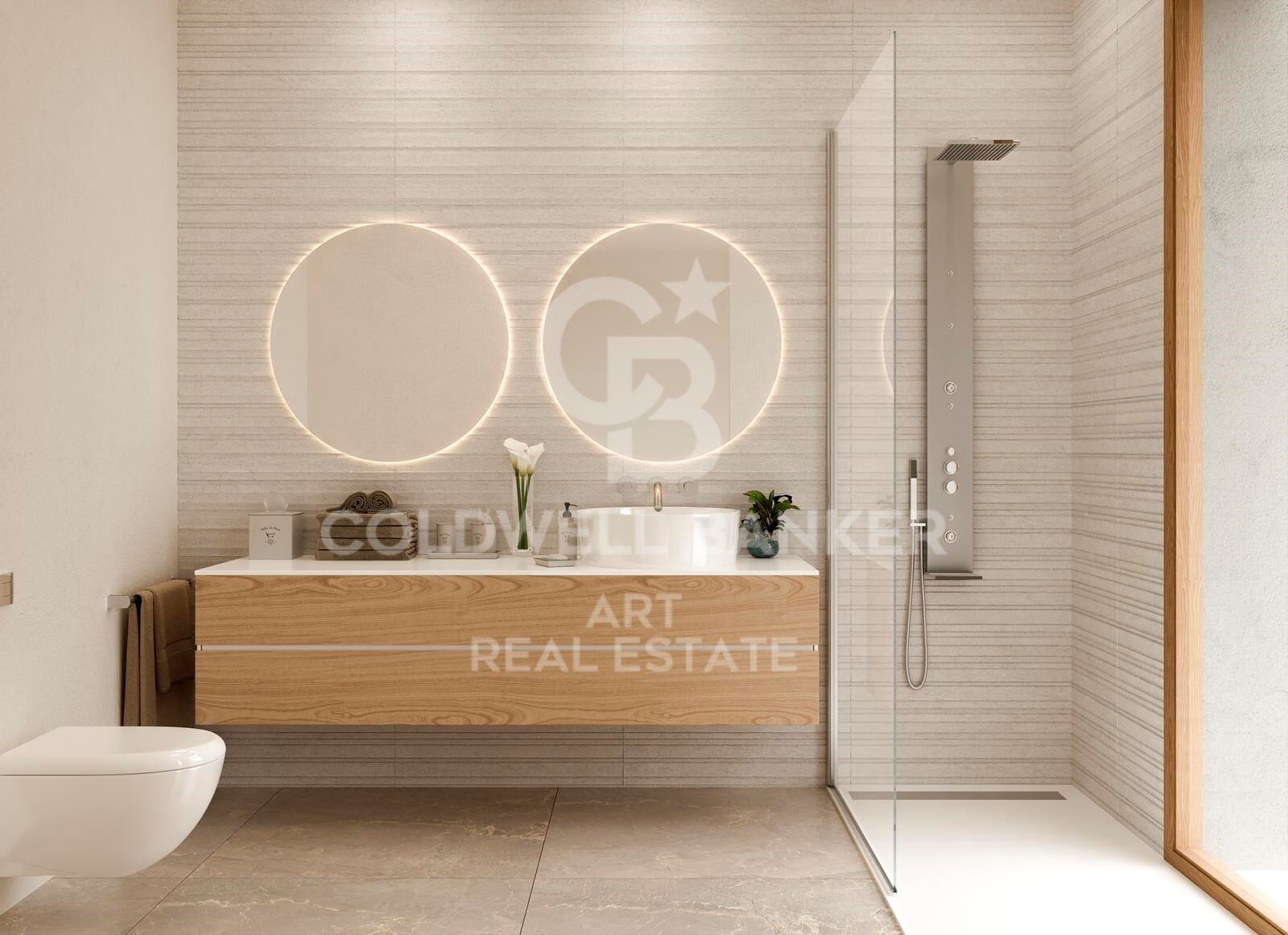 Im Obergeschoss befinden sich drei Schlafzimmer und zwei geschmackvoll gestaltete Badezimmer. Die Eckeinheiten bieten zusätzlichen Luxus mit einem vierten Schlafzimmer und einem Badezimmer im Erdgeschoss sowie einer privaten Dachterrasse mit Panoramablick auf das Meer und die Berge. Ausgewählte Häuser verfügen über einen privaten Garten mit der Möglichkeit, einen Swimmingpool hinzuzufügen, während andere über eine großzügige Terrasse mit Blick auf das Tal verfügen.
