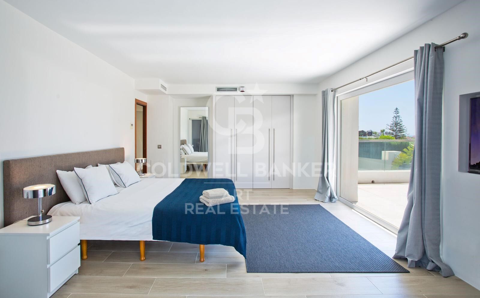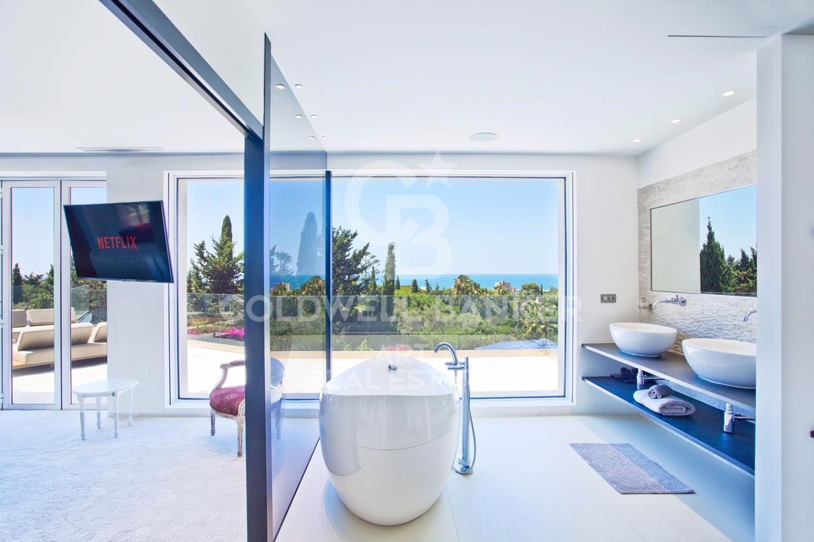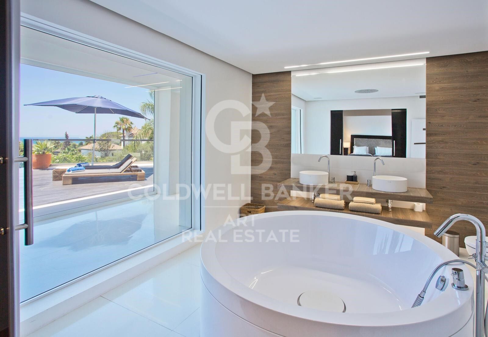 Die gesamte erste Etage ist einer großzügigen Master-Suite mit Lounge, Bar, luxuriösem Badezimmer, Ankleidezimmer und durchgehender Terrasse gewidmet. Darüber hinaus bietet eine große Dachterrasse eine spektakuläre Aussicht - perfekt für ein privates Sonnenbad oder Zusammenkünfte bei Sonnenuntergang.