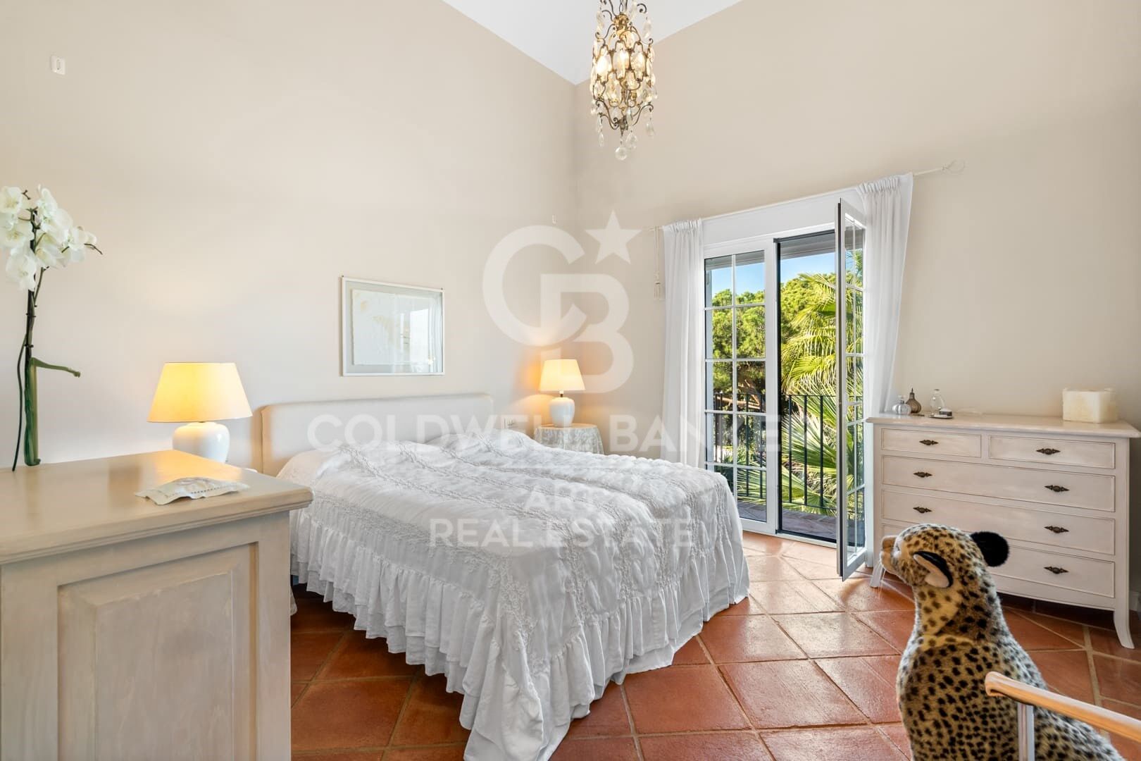 Dank ihrer Südwestausrichtung in natürliches Licht getaucht, genießt die Villa den ganzen Tag über Sonnenschein und spektakuläre Sonnenuntergänge über der Bucht von Marbella. Im Erdgeschoss befinden sich fünf geräumige Schlafzimmer mit eigenem Bad, die Privatsphäre und Komfort für die ganze Familie bieten. Eine zusätzliche Gästesuite auf der unteren Ebene bietet Flexibilität für Besucher oder Großfamilie.