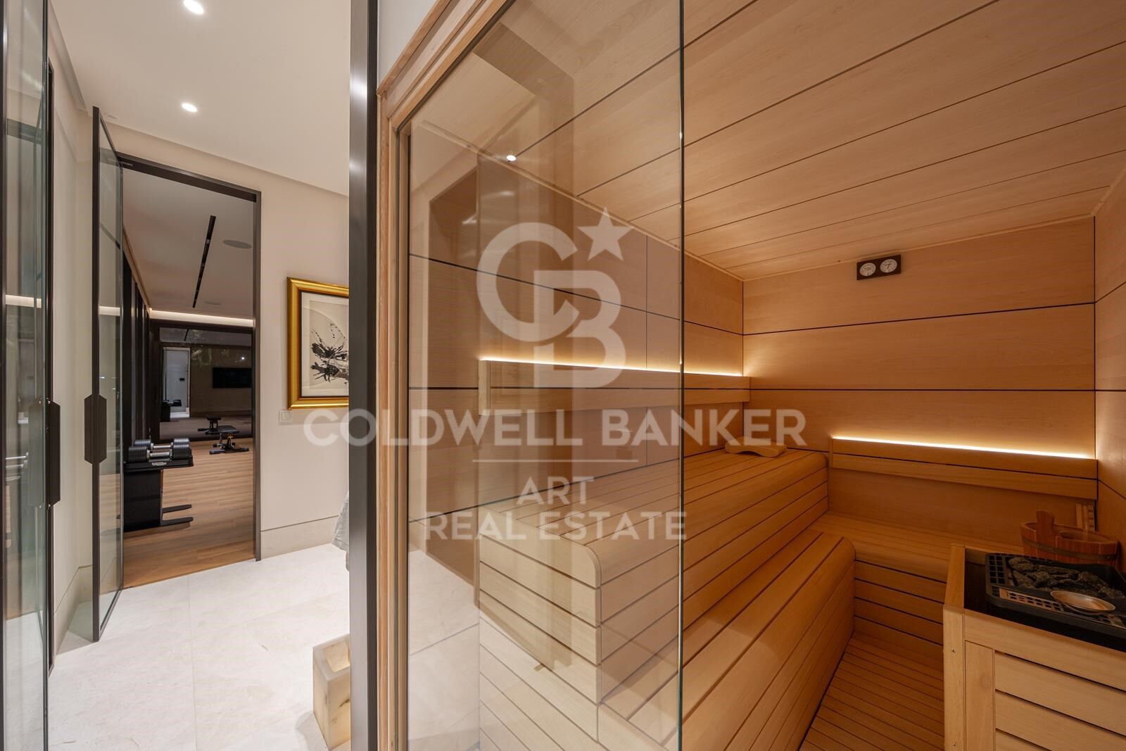 Das Untergeschoss ist dem Freizeit- und Wellnessbereich gewidmet. Es verfügt über ein vollständig ausgestattetes Gästezimmer, einen Hauswirtschaftsraum, eine Entertainment-Lounge mit maßgeschneiderter Bar, ein komplettes Spa mit beheiztem Innenpool und Sauna sowie ein privates Fitnessstudio. Eine von Proinsermant entworfene Technikzentrale unterstreicht die technische Raffinesse und betriebliche Qualität der Villa.