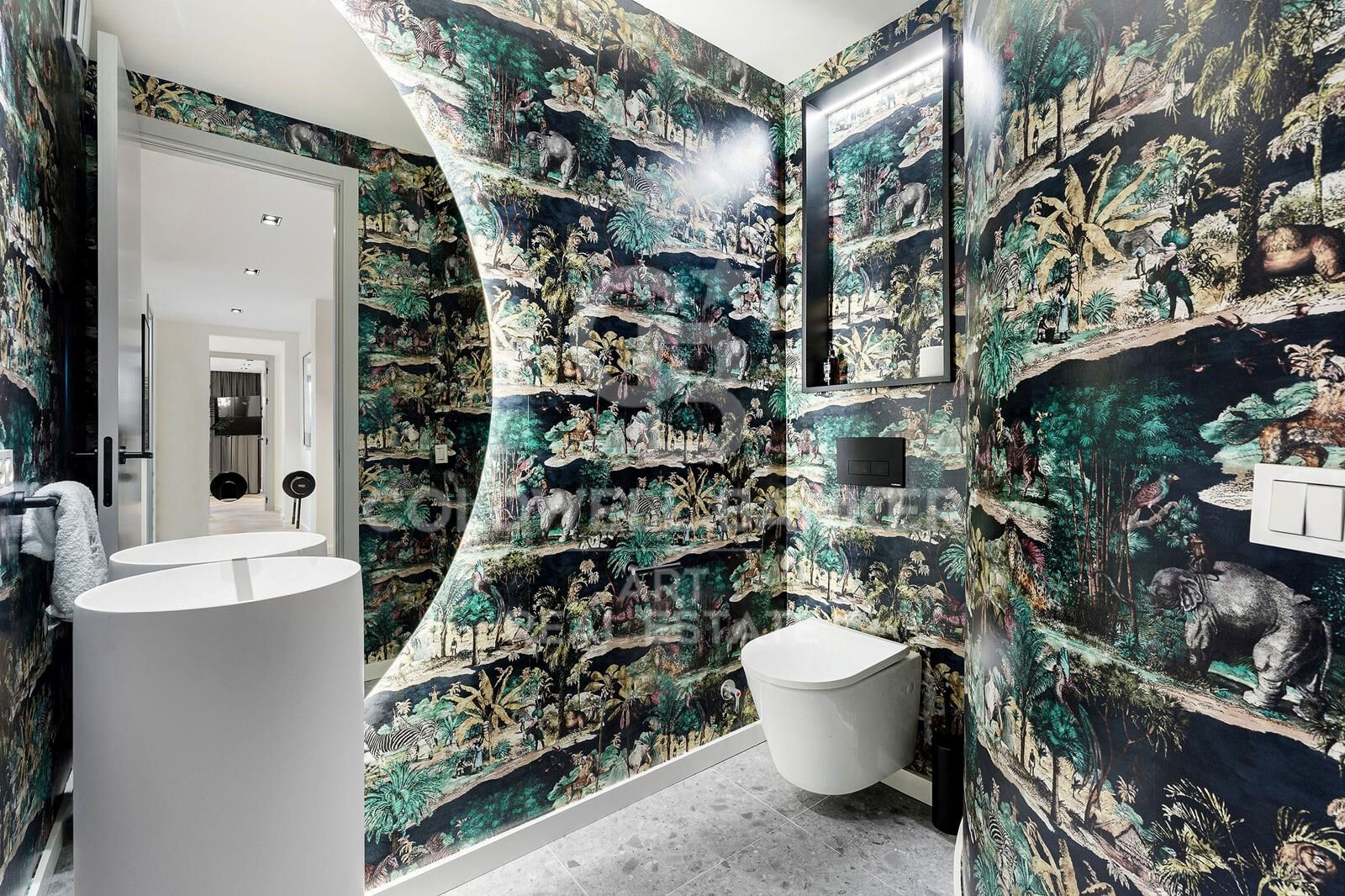 The main level hosts an opulent master suite with a spa-like en-suite bathroom, a large walk-in closet, and a freestanding bathtub overlooking a serene terrace. An additional bedroom offers flexibility for guests or family members seeking privacy.