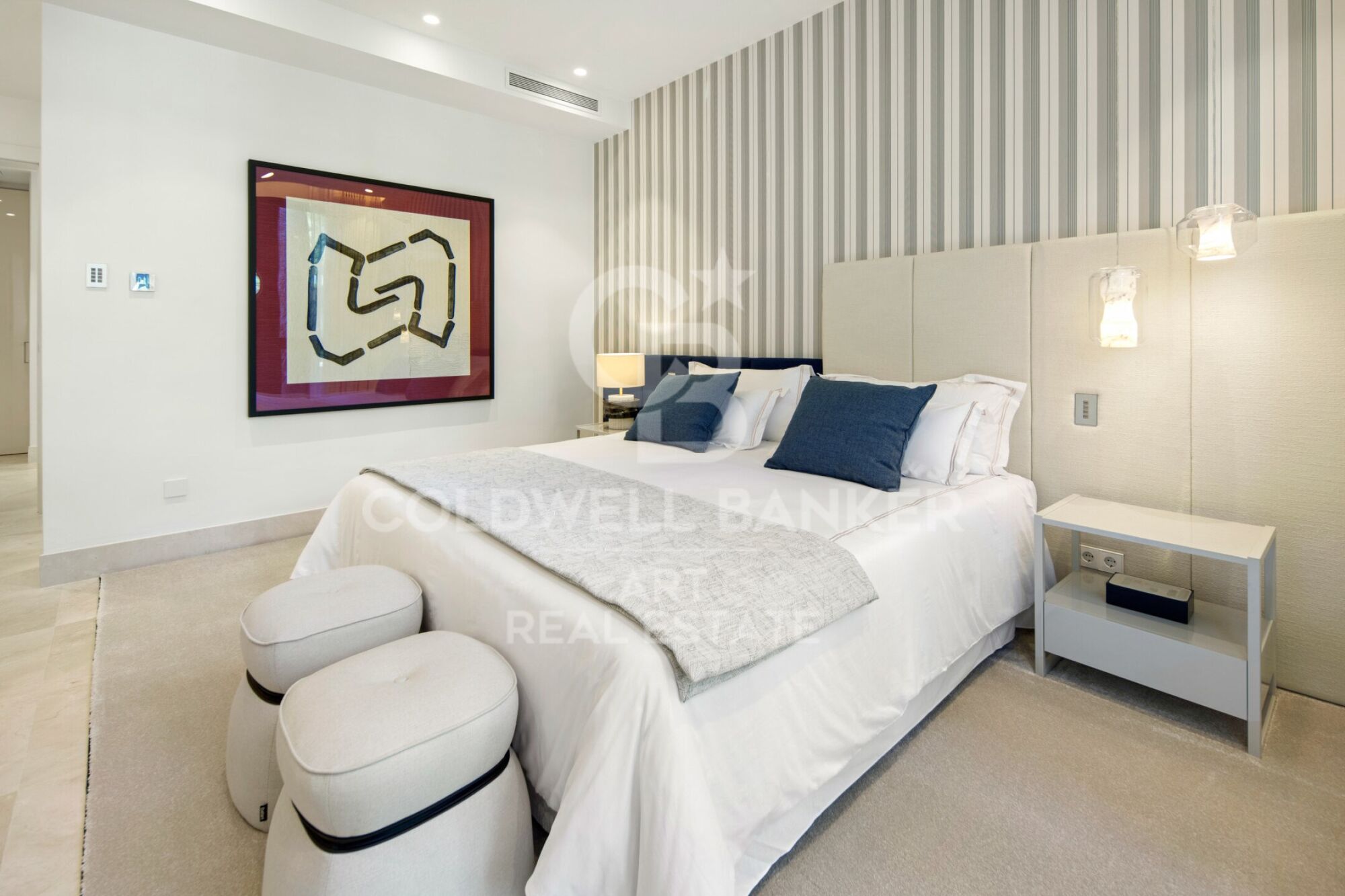 Die Innenpalette ist bewusst gewählt und außergewöhnlich stimmig: tiefes Bordeauxrot, Marineblau, sanfte Blautöne und warme Naturfarben, kombiniert mit Designermöbeln und ausgewählten Kunstwerken, die Teil des Projekts von Pedro Peña sind. Nichts wirkt vergänglich. Stauraum ist durchdacht, die Raumaufteilung logisch und die Proportionen priorisieren das tägliche Leben über spektakuläre Effekte. Selbst der Übergang von der Garage in das Haus ist fließend: Man kommt an, schließt die Tür, und die Außenwelt verschwindet ganz selbstverständlich. Das wirft eine stille Frage auf: Sollte ein luxuriöses Zuhause Besucher beeindrucken - oder einfach dafür sorgen, dass seine Eigentümer es nie verlassen möchten?