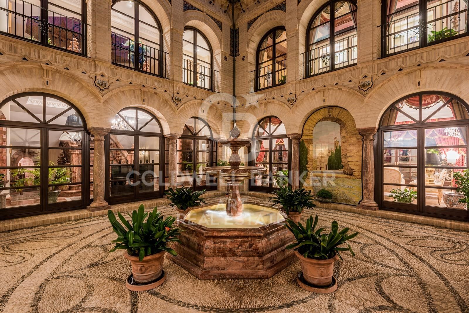 Ein prächtiger Eingangsbereich mit handgefertigter Kuppel und Alhambra-Säulen mit maurischen Details empfängt die Besucher. Das Haupthaus ist um einen zentralen Innenhof mit Springbrunnen angeordnet. Der Wohnbereich, das Kaminzimmer und das Esszimmer liegen im südlichen Teil des Hauses mit Blick auf das Meer und die Umgebung.