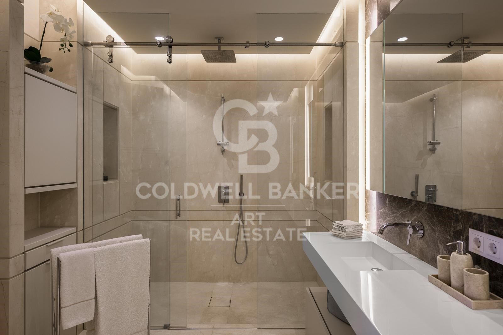 Fünf Bäder und zwei lauschige Terrassen sorgen für Komfort und Vielseitigkeit, während viel Tageslicht die gesamte Residenz von morgens bis abends durchflutet. Die Wohnung wurde vor fünf Jahren mit außergewöhnlicher Liebe zum Detail renoviert und bewahrt die Essenz ihrer ursprünglichen Architektur, integriert aber moderne Elemente, die das luxuriöse Gefühl unterstreichen.