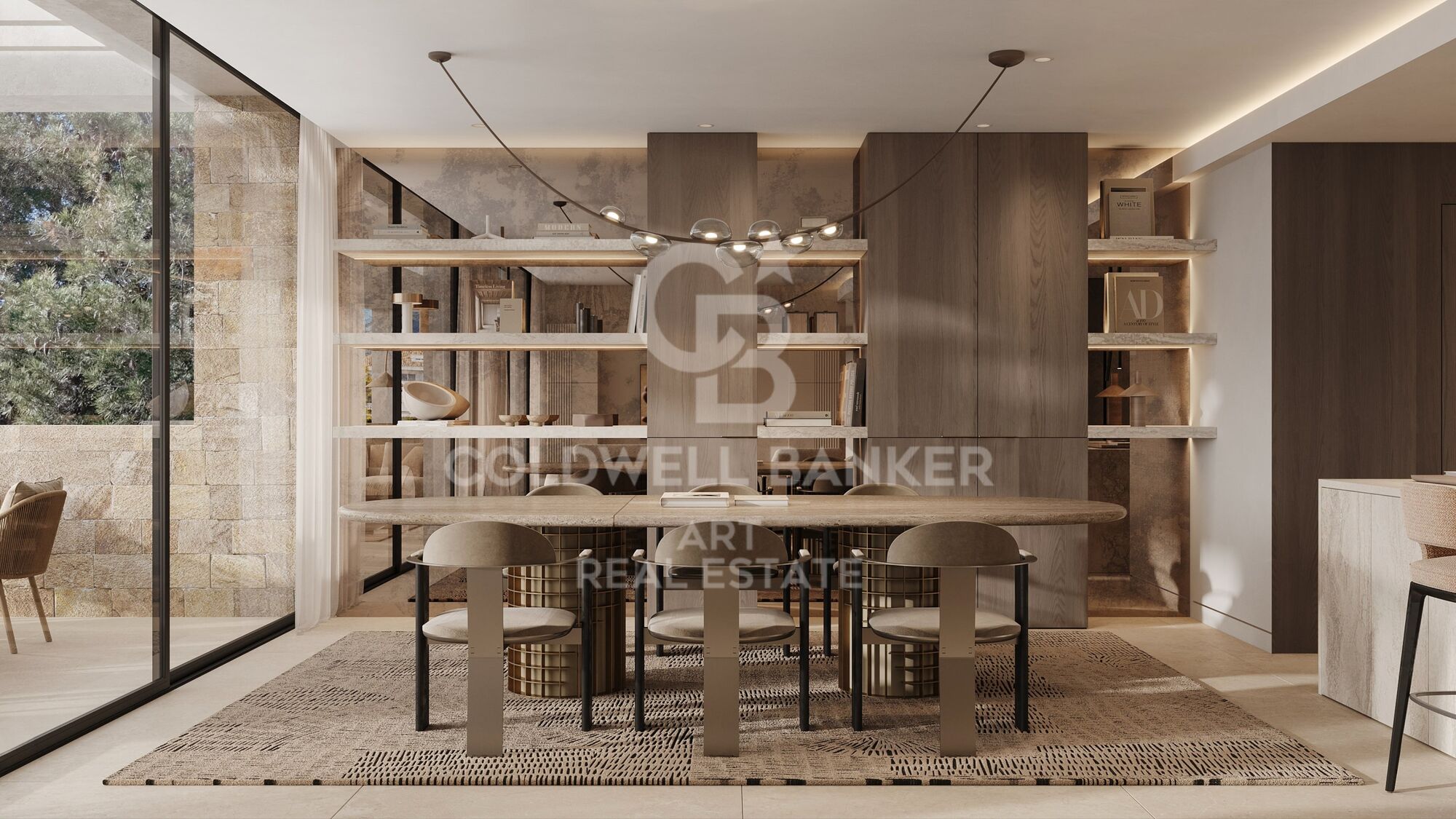 Das Untergeschoss bietet Raum für Freizeit und Komfort: ein Wohnbereich mit Bar, ein Weinkeller, ein fünftes Schlafzimmer mit eigenem Bad, sowie ein zentraler Patio, der für Tageslicht und natürliche Belüftung sorgt. Ein Gäste-WC, Wasch- und Hauswirtschaftsraum sowie ein Abstellraum sind diskret und funktional integriert.