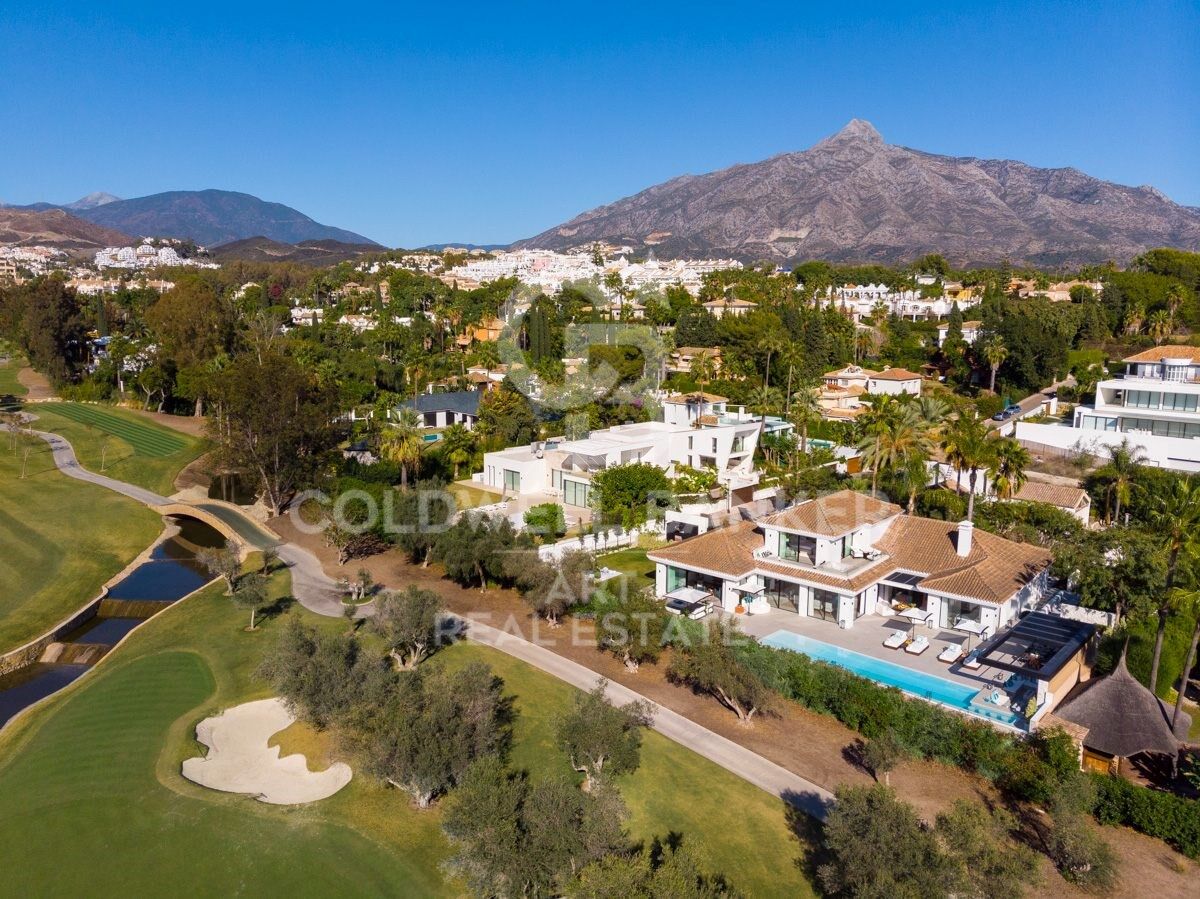 Im Herzen von Nueva Andalucía befindet sich diese kürzlich renovierte Villa, die eine perfekte Kombination aus Komfort und Stil bietet. In einer der begehrtesten Gegenden von Marbella gelegen, genießt die Immobilie eine privilegierte Lage mit herrlichem Blick auf den Golfplatz und das Meer, einfachem Zugang zu allen Annehmlichkeiten und absoluter Privatsphäre. Im Inneren zeichnet sich das Haus durch eine elegante Materialauswahl aus, darunter Fischgrät-Holzböden, die jedem Raum Wärme und Raffinesse verleihen. Die Danespan-Küche verbindet klares Design mit Funktionalität und schafft einen einladenden Mittelpunkt sowohl für den Alltag als auch für das Empfangen von Gästen. Die Villa verfügt über fünf großzügige Schlafzimmer, die sorgfältig angeordnet sind, um den Komfort für Familie und Gäste zu gewährleisten. Der Wellnessbereich umfasst ein Hallenbad, eine Sauna und ein Dampfbad und bietet ein privates Spa-Erlebnis im eigenen Zuhause. Große Fenster schaffen eine nahtlose Verbindung zwischen Innen- und Außenbereichen und öffnen sich zu großzügigen Terrassen und einem weitläufigen Garten, der für Entspannung und gesellige Zusammenkünfte gestaltet wurde. Die Außenbereiche bieten mehrere Möglichkeiten zum Essen, Entspannen und Genießen der ruhigen Umgebung. Ausgestattet mit einem Lutron-Hausautomationssystem und wassergeführter Fußbodenheizung im gesamten Haus garantiert die Immobilie modernen Komfort und ein angenehmes Wohngefühl das ganze Jahr über. Mit ihrer Kombination aus elegantem Design, weiten Ausblicken und einer außergewöhnlichen Lage bietet sie ein luxuriöses Refugium der Ruhe im Herzen von Marbella. #ref:CBSH1325