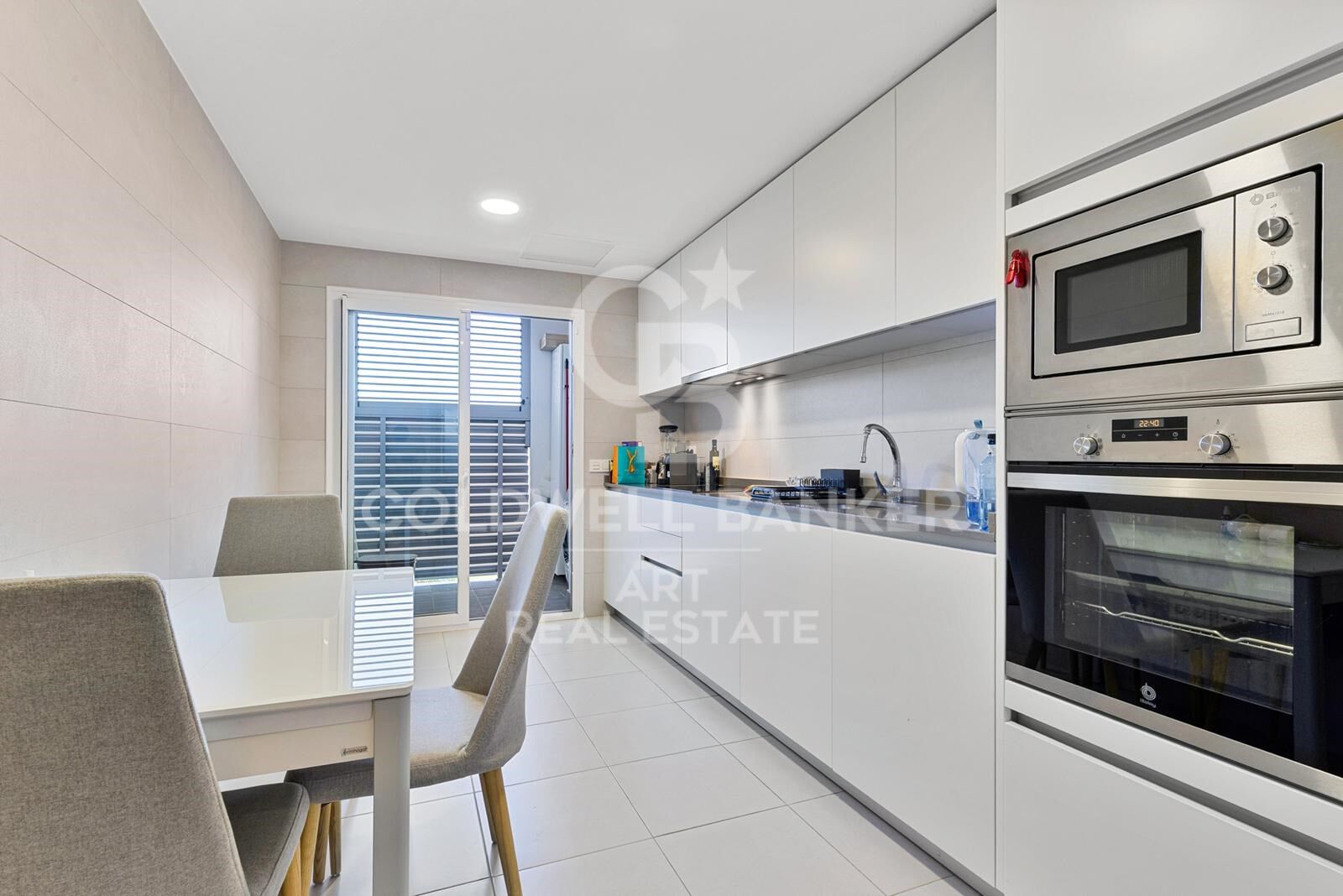 Das Apartment verfügt über einen hellen, offenen Wohn- und Essbereich mit direktem Zugang zur Terrasse, ideal zum Entspannen oder für Gäste. Die voll ausgestattete Küche mit hochwertigen Elektrogeräten vereint Funktionalität und modernes Design. Die drei Schlafzimmer sind geräumig und mit Einbauschränken ausgestattet; das Hauptschlafzimmer verfügt über ein elegantes Badezimmer en suite mit hochwertigen Materialien. Die Ausstattung umfasst Klimaanlage (warm/kalt), doppelt verglaste Fenster, Glasfaser-Internet sowie eine barrierefreie Gestaltung, ideal für Rollstuhlfahrer.