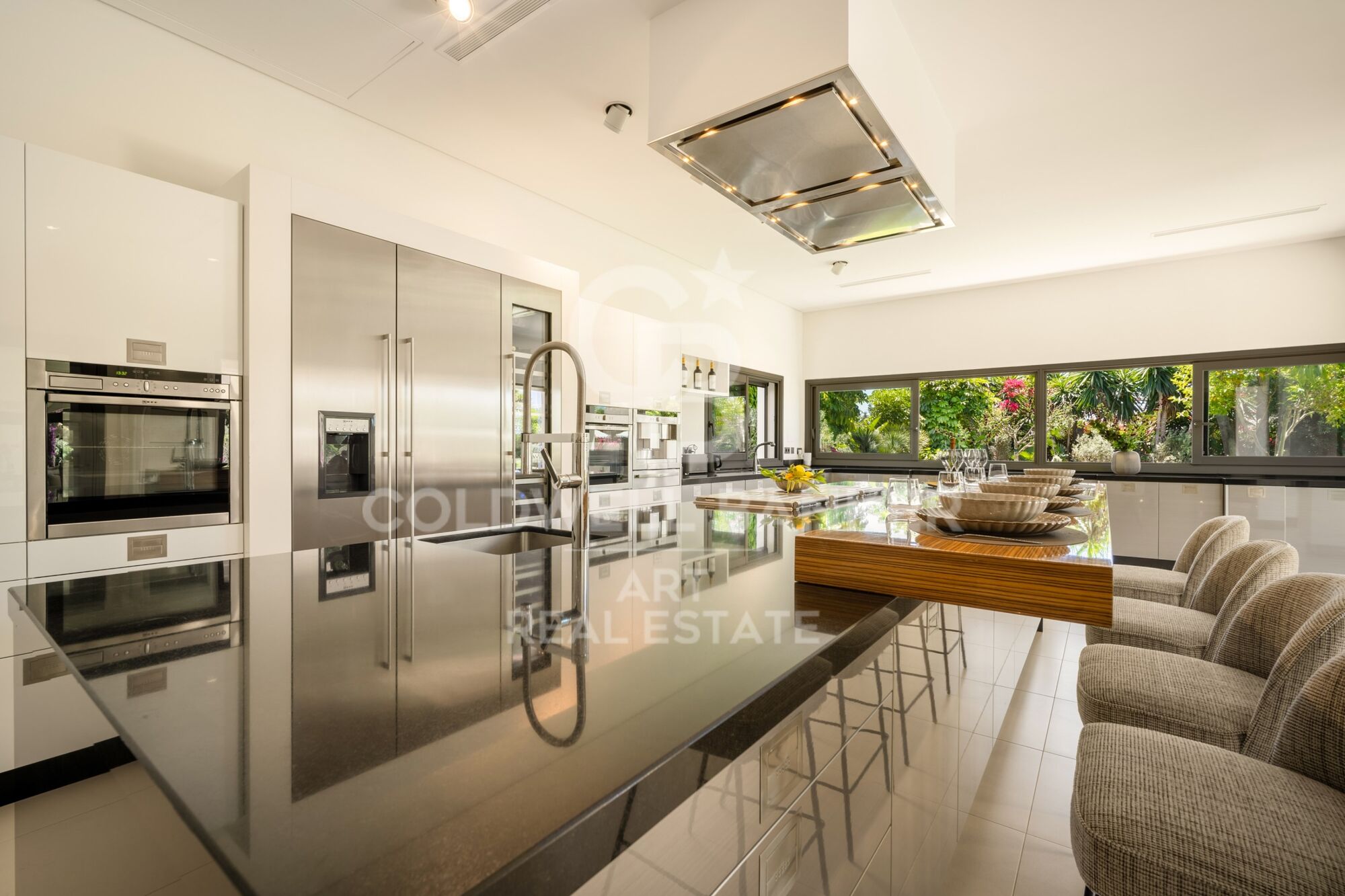 Die Gartenlandschaft wurde von der renommierten Firma Fantastic Garden gestaltet und integriert außergewöhnliche, alte Pflanzenspezies, die dem Garten eine exklusive botanische Pracht verleihen. Zu den herausragenden Arten gehören majestätische FicusBäume, Washingtonia robustaPalmen, Strelitzia nicolai (Riesiger Paradiesvogel), lebhaft blühende Jacarandas sowie hohe Agave americana und Cycas revoluta. Tropische Hibiskus, Kentia und DracaenaPflanzen verstärken das exotische und anspruchsvolle Ambiente.