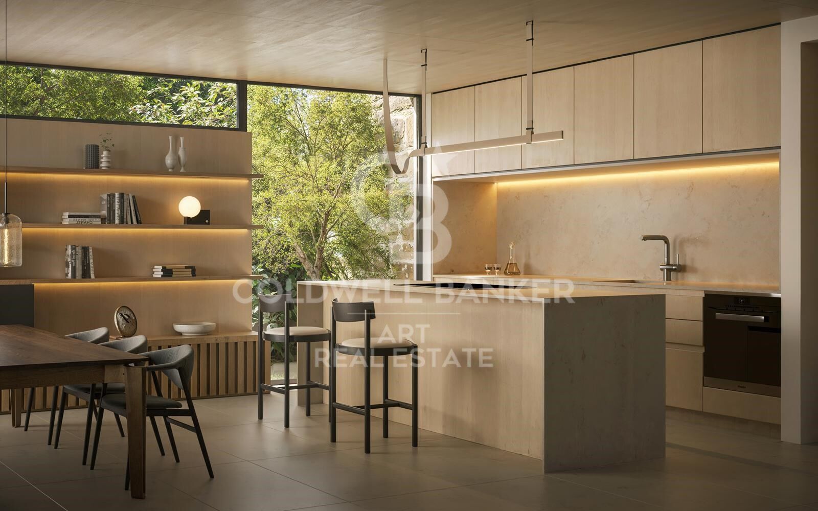 The interiors are a true work of art, combining refined aesthetics with practical design. The open-plan layout elegantly connects the kitchen, living, and dining areas, all enhanced by floor-to-ceiling glass doors that flood the space with natural light and offer direct access to the beautifully appointed outdoor spaces. The upper floor is dedicated to the luxurious master suite, featuring a walk-in wardrobe and an opulent en-suite bathroom. The additional guest bedrooms are equally well-designed, ensuring maximum comfort and privacy for family and visitors.