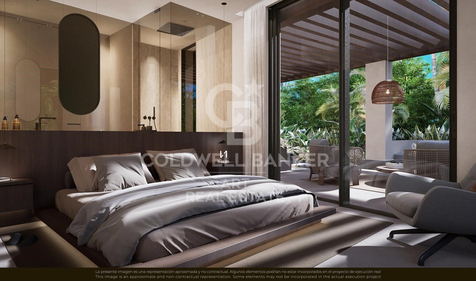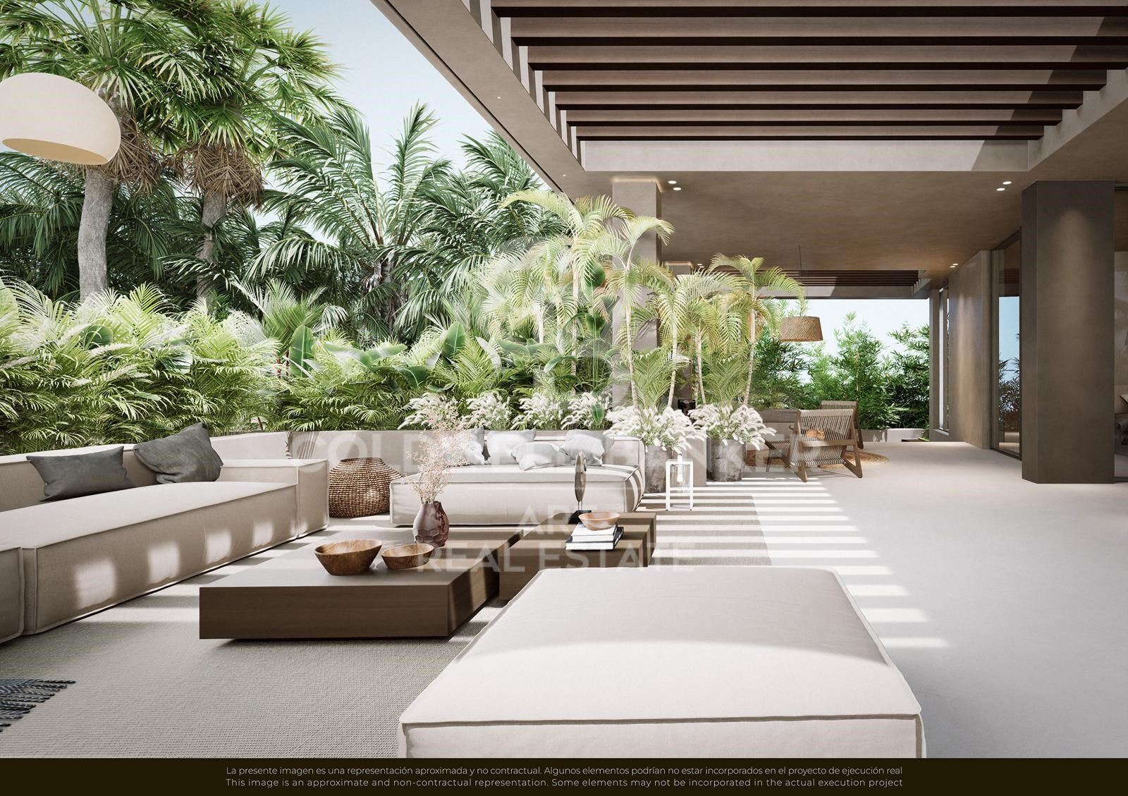 Zu den Highlights zählen ein spektakulärer Infinity-Pool, sonnendurchflutete Terrassen und ruhige Gartenlounges, die von Grün umgeben sind. Im Inneren bieten elegante Schlafzimmer-Suiten, spa-inspirierte Badezimmer und eine raffinierte offene Küche, gefertigt aus hochwertigen Materialien, durchdachte Raumgestaltung. Mit NMobes unverkennbarem Anspruch an Exzellenz und zeitloses Design stellt diese Villa eine seltene Gelegenheit dar, ein maßgeschneidertes Refugium in einer der begehrtesten Gegenden Marbellas zu besitzen.