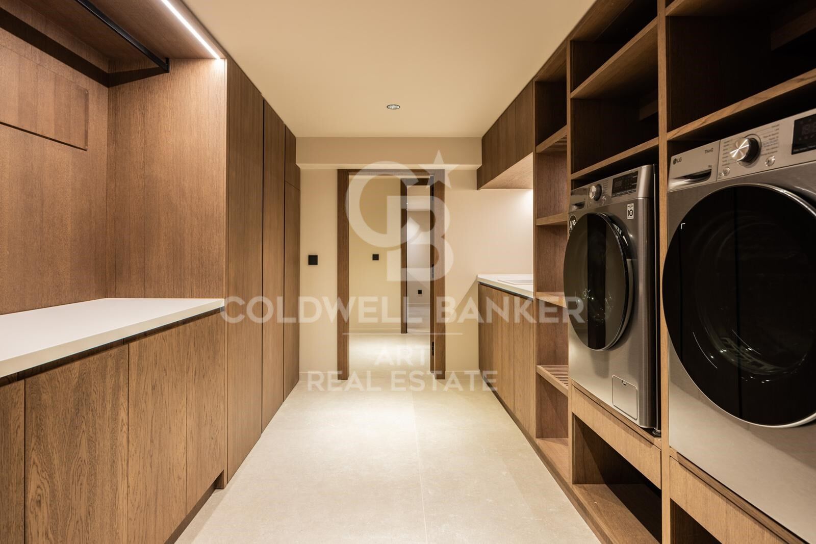 Die untere Etage bietet ein eigenständiges Apartment mit eigener Küche und Bad, ideal für Gäste oder Personal, sowie eine Bar, einen Hauswirtschaftsraum und einen individuell nutzbaren Raum für Fitness, Heimkino oder Studio. Eine private Garage komplettiert diese Ebene. Die Villa wird voll möbliert verkauft und ist bezugsfertig.