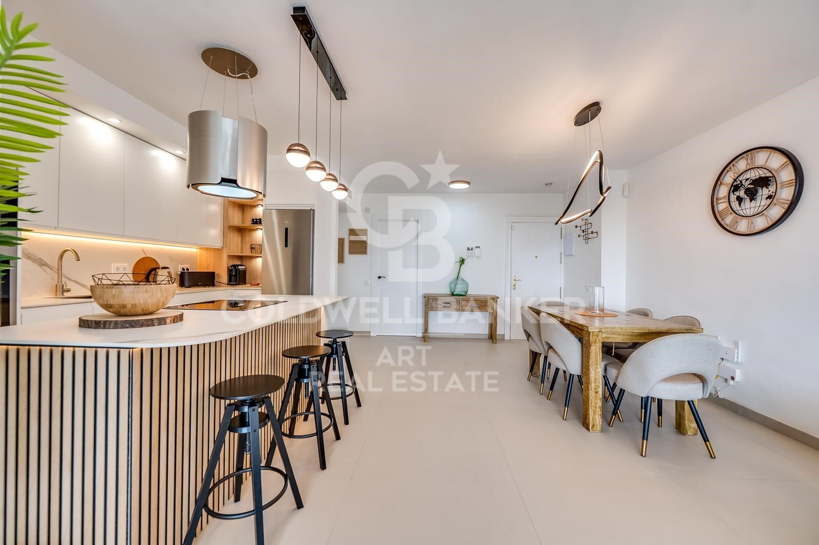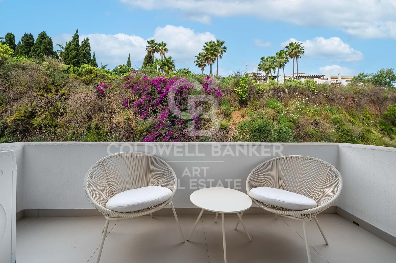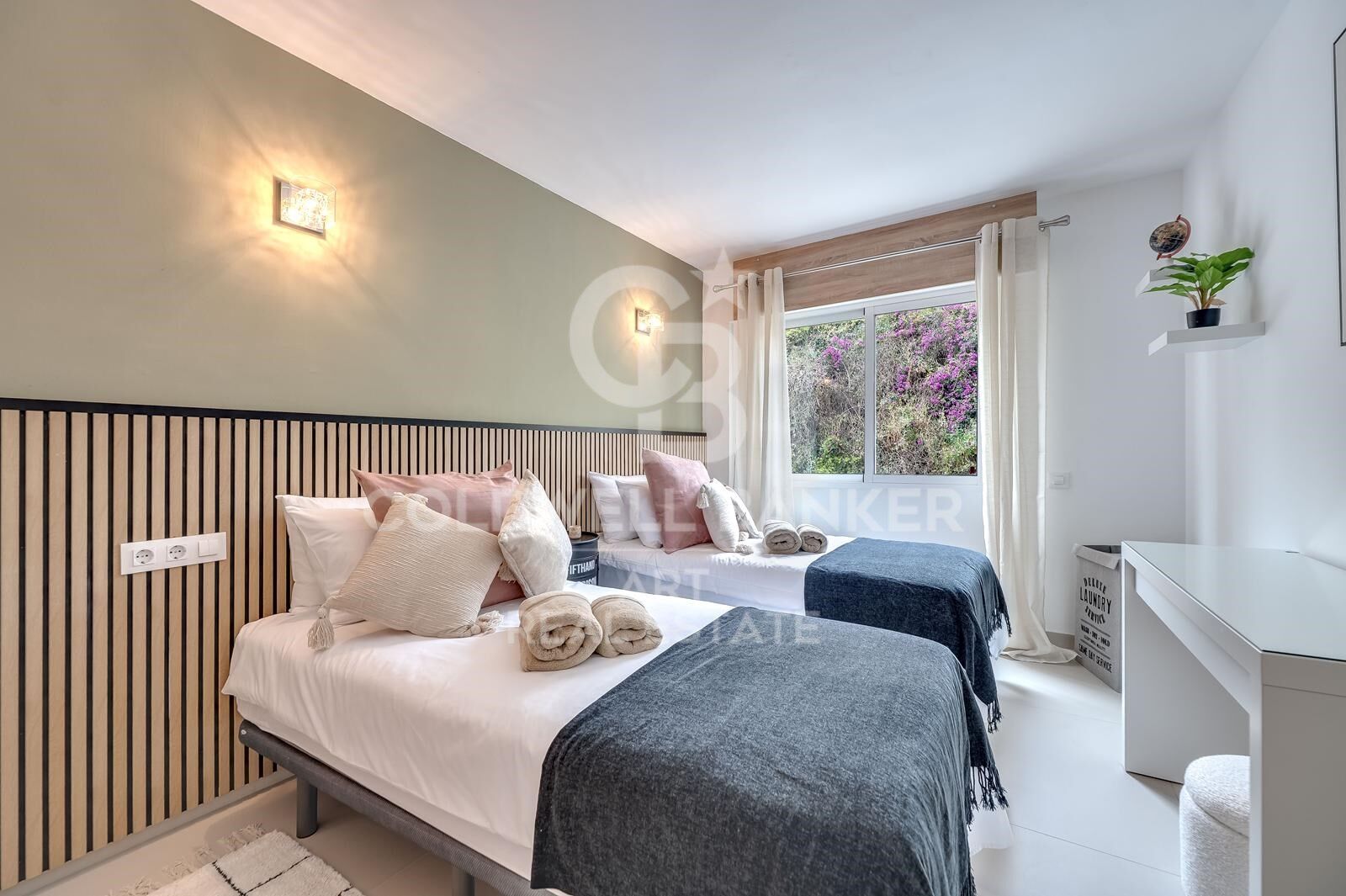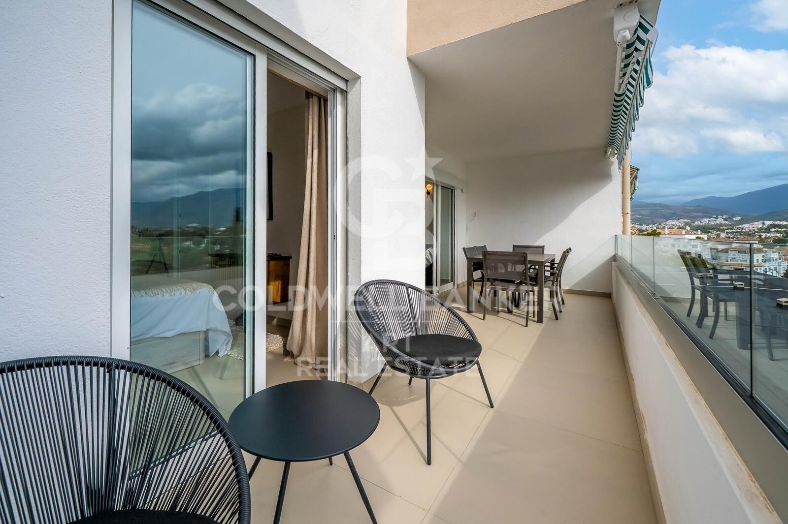 Die Wohnung befindet sich in einer oberen Etage und bietet eine nach Osten ausgerichtete Terrasse mit atemberaubendem Panoramablick auf den Berg La Concha und das Mittelmeer. Der Innenbereich wurde komplett renoviert und überzeugt mit einem modernen Design, einer stilvollen Küche, Marmorböden und integrierten Geräten.