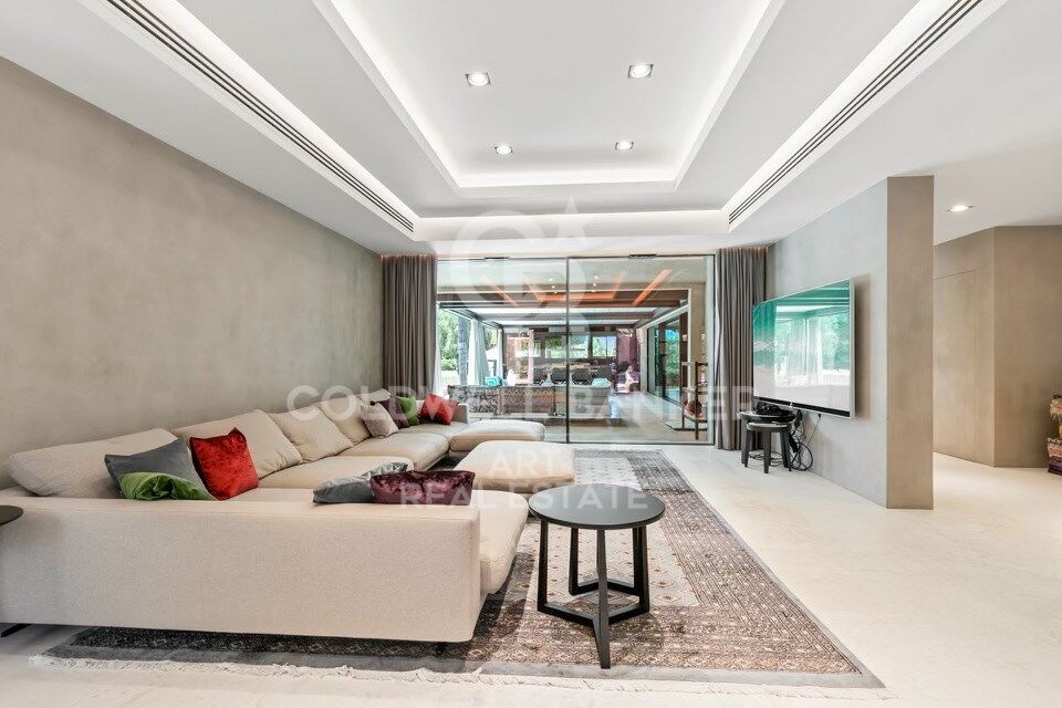 Diese exklusive Villa in Río Real im Osten von Marbella wurde mit höchstem Anspruch vollständig renoviert, ohne Kompromisse bei Materialien oder Ausstattung. Auf einem großzügigen Grundstück von über 2.000 Quadratmetern bietet sie ein Höchstmaß an Privatsphäre, Raum und stilvollem Wohnen.