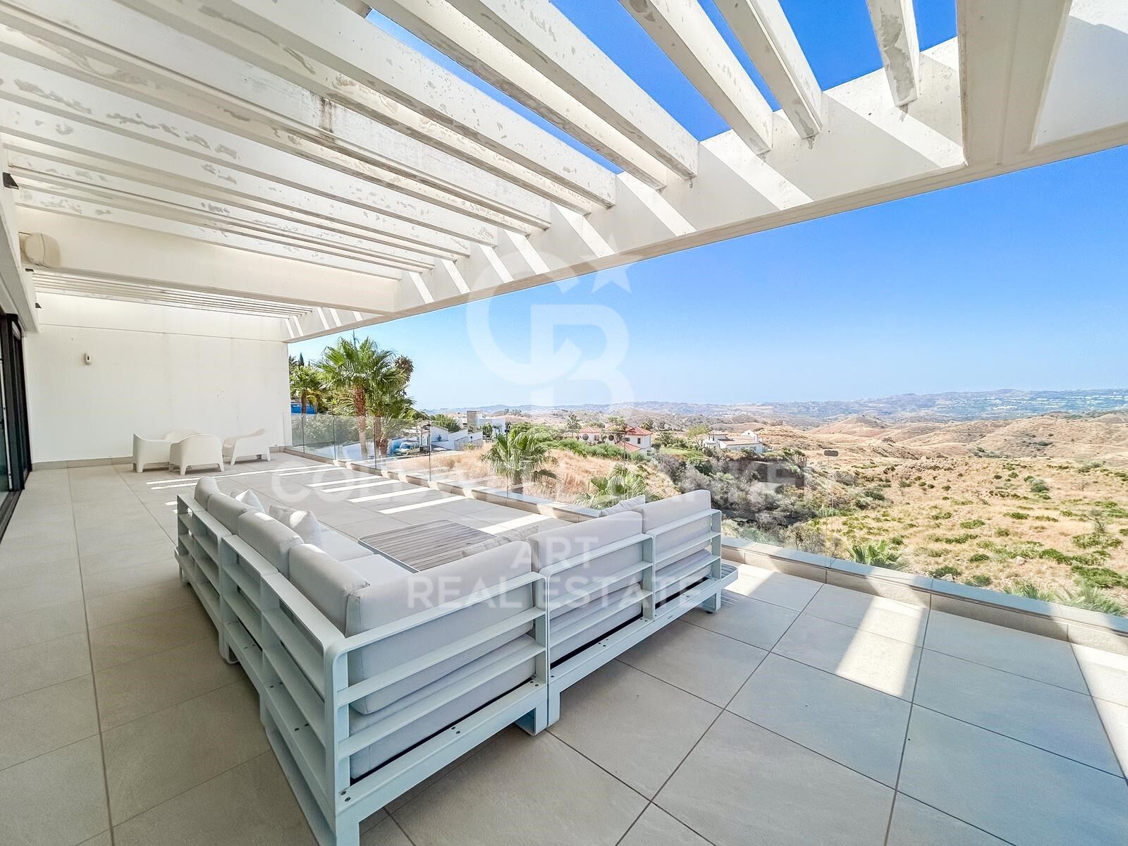 Das Obergeschoss ist für das gesellige Leben und den Genuss der atemberaubenden Aussicht gedacht. Hier finden Sie ein geräumiges Wohnzimmer mit hohen Decken, eine moderne offene Küche und ein großes Esszimmer, das mit einer spektakulären Terrasse verbunden ist, von der aus Sie die schönsten Sonnenuntergänge über dem Tal und dem Meer betrachten können. Es verfügt auch über ein Gäste-WC und eine Treppe, um auf das Dach zu gelangen, wo sich die Sonnenkollektoren befinden.