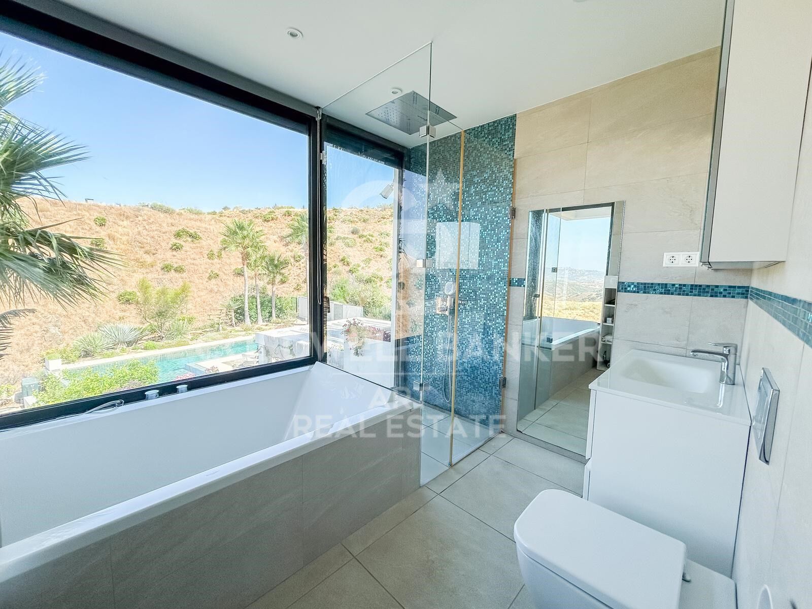 Erbaut auf einem großzügigen Grundstück von 1.718 m², bietet das Anwesen eine Gesamtfläche von 312 m², verteilt auf drei Ebenen, die Funktionalität, Design und Wärme vereinen. Mit einer privilegierten Süd- und Westausrichtung eröffnet sich die Villa zu einem unvergleichlichen Panoramablick, der das Mijas-Tal, die majestätischen Berge und das blaue Mittelmeer umfasst.
