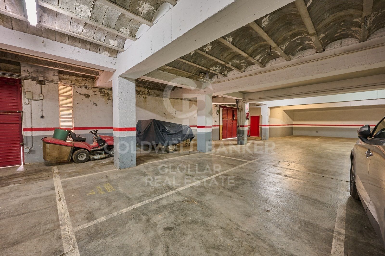 The property also has a closed garage for one car and several motorbikes, with an upper terrace of approximately 22 m², as well as an additional outdoor parking area.