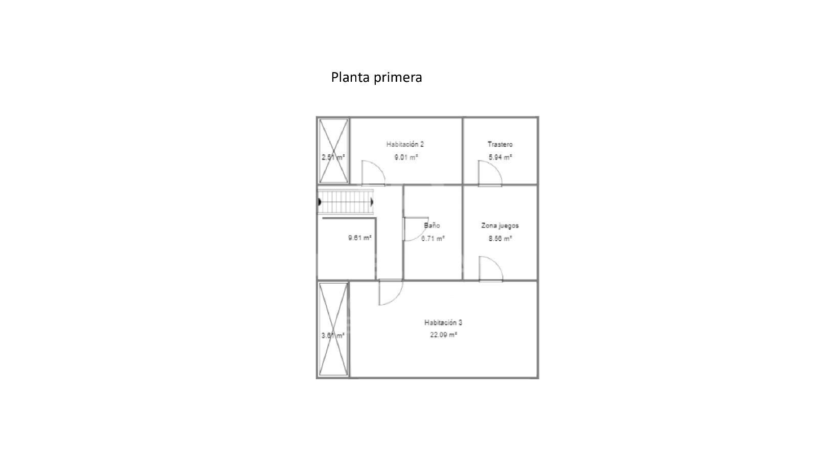 This floor houses two double bedrooms with large windows, two exterior bathrooms and a single bedroom with access to a cosy terrace with porch.
