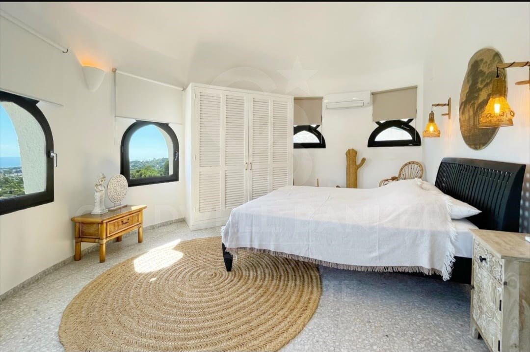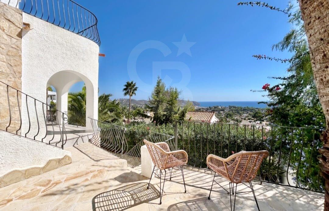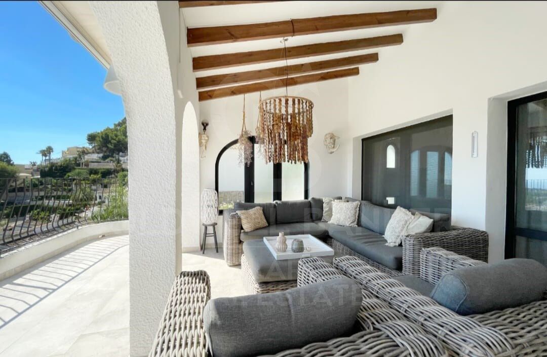 Exklusive Villa im Ibiza-Stil mit atemberaubendem Panoramablick auf das Meer in Moraira