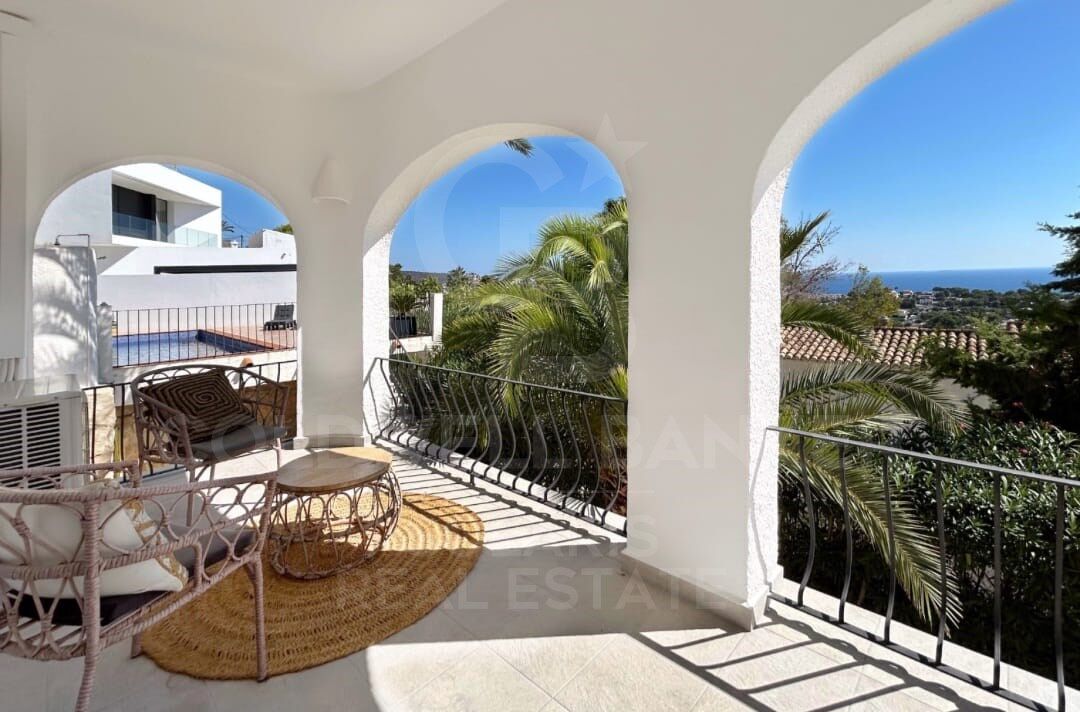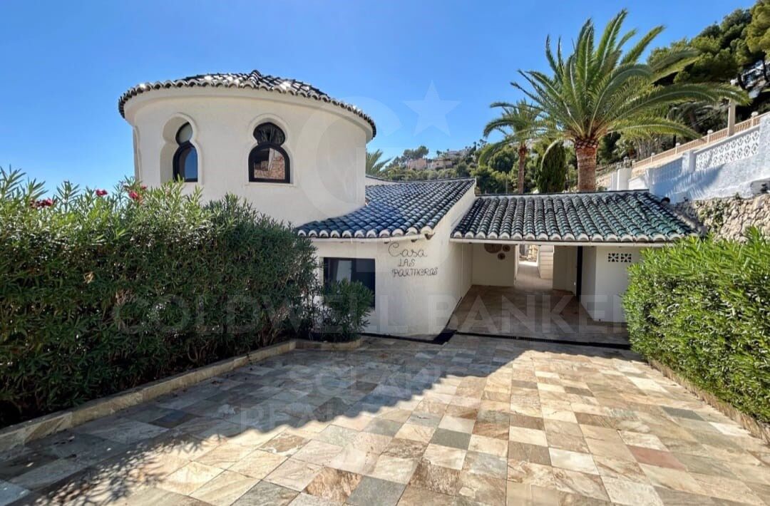 Diese außergewöhnliche, komplett renovierte Villa befindet sich in der renommierten Urbanisation Benimeit in Moraira und bietet einen atemberaubenden 180°-Panoramablick über das Mittelmeer und das charmante Stadtzentrum. Eine bezugsfertige Immobilie, die Privatsphäre, Design und Nähe zu den besten Stränden und Dienstleistungen vereint.