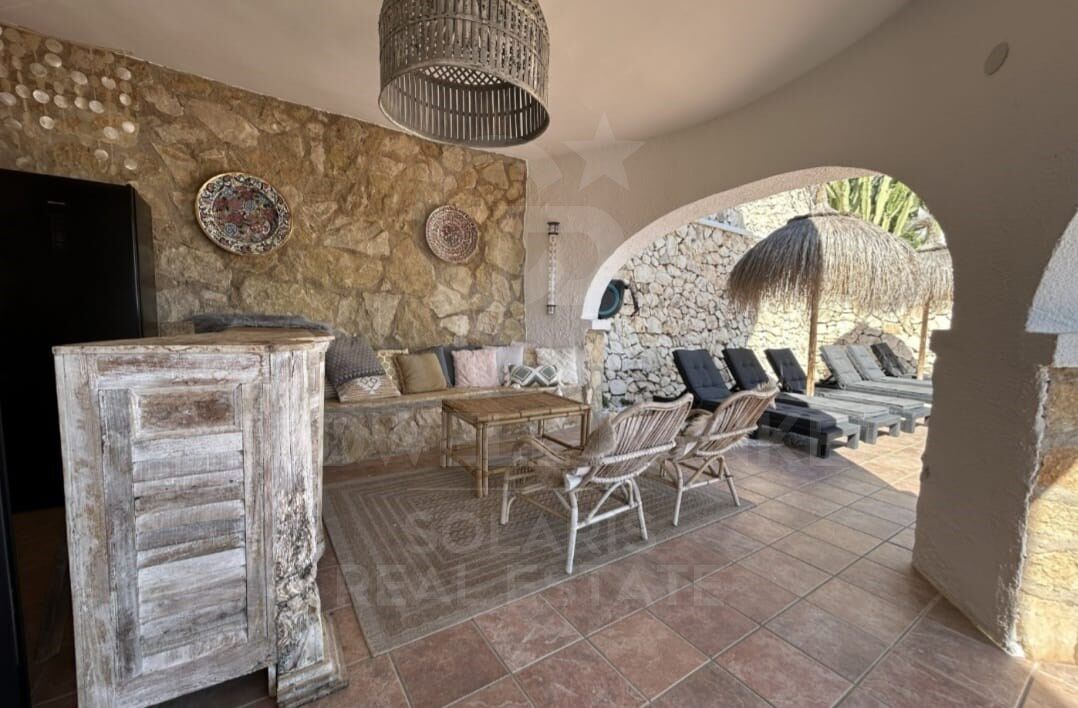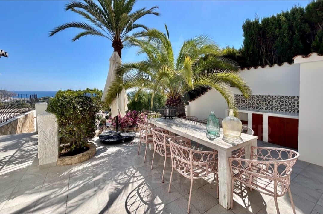 Die Außenfassade wurde so gestaltet, dass sie das Mittelmeerklima optimal genießen kann. Die großzügigen Terrassen umgeben das kürzlich renovierte Becken und bieten eine ideale Umgebung zur Entspannung mit Meerblick. Ein eleganter Loungebereich mit überdachter Bar sticht hervor und eignet sich perfekt, um Gäste zu empfangen und unvergessliche Abende zu genießen.
