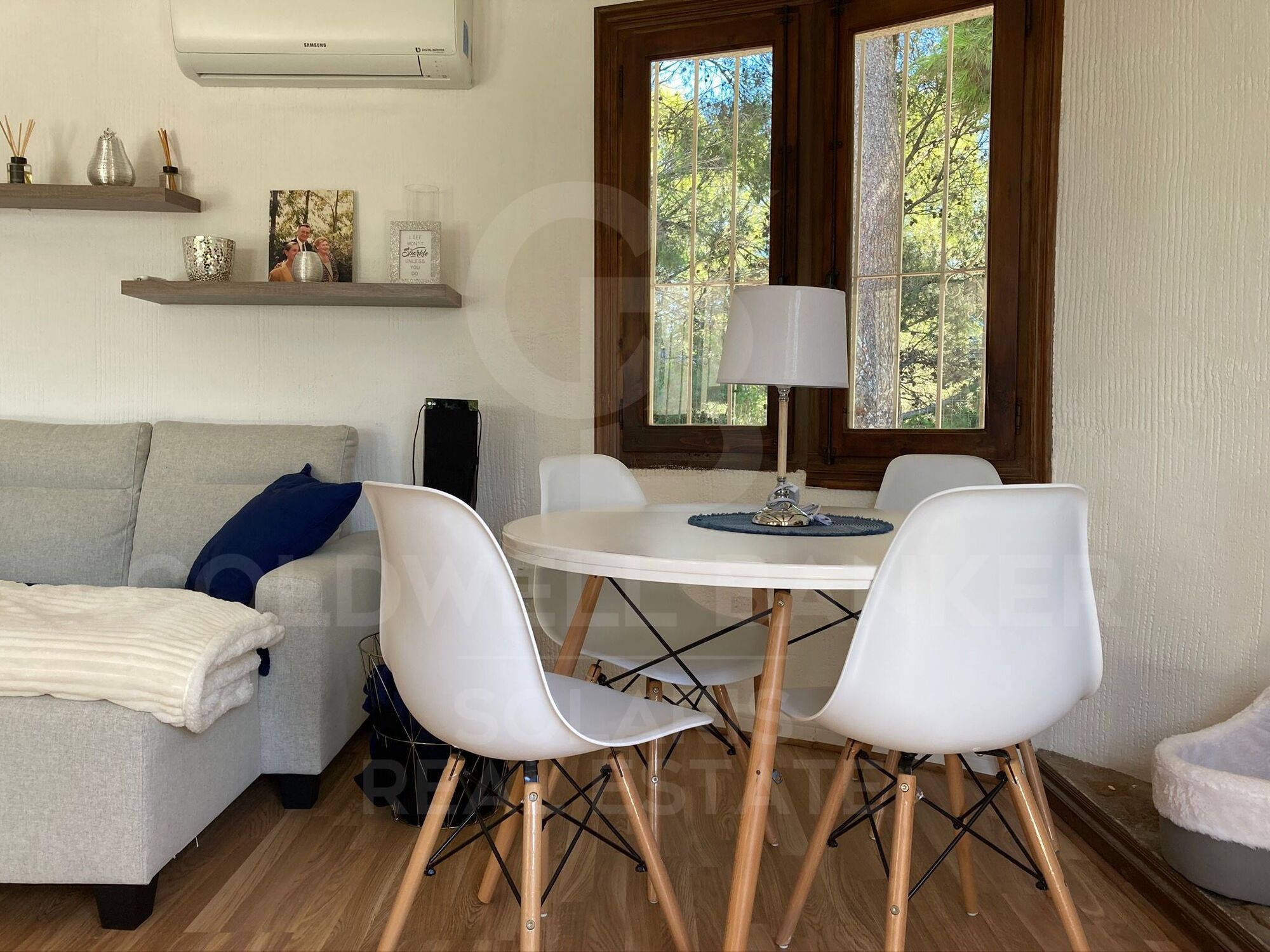 Draußen verfügt das Grundstück über eine große überdachte Veranda, ideal für das ganzjährige Genießen des mediterranen Klimas, ein privates Schwimmbad und einen Parkplatz auf dem Grundstück.