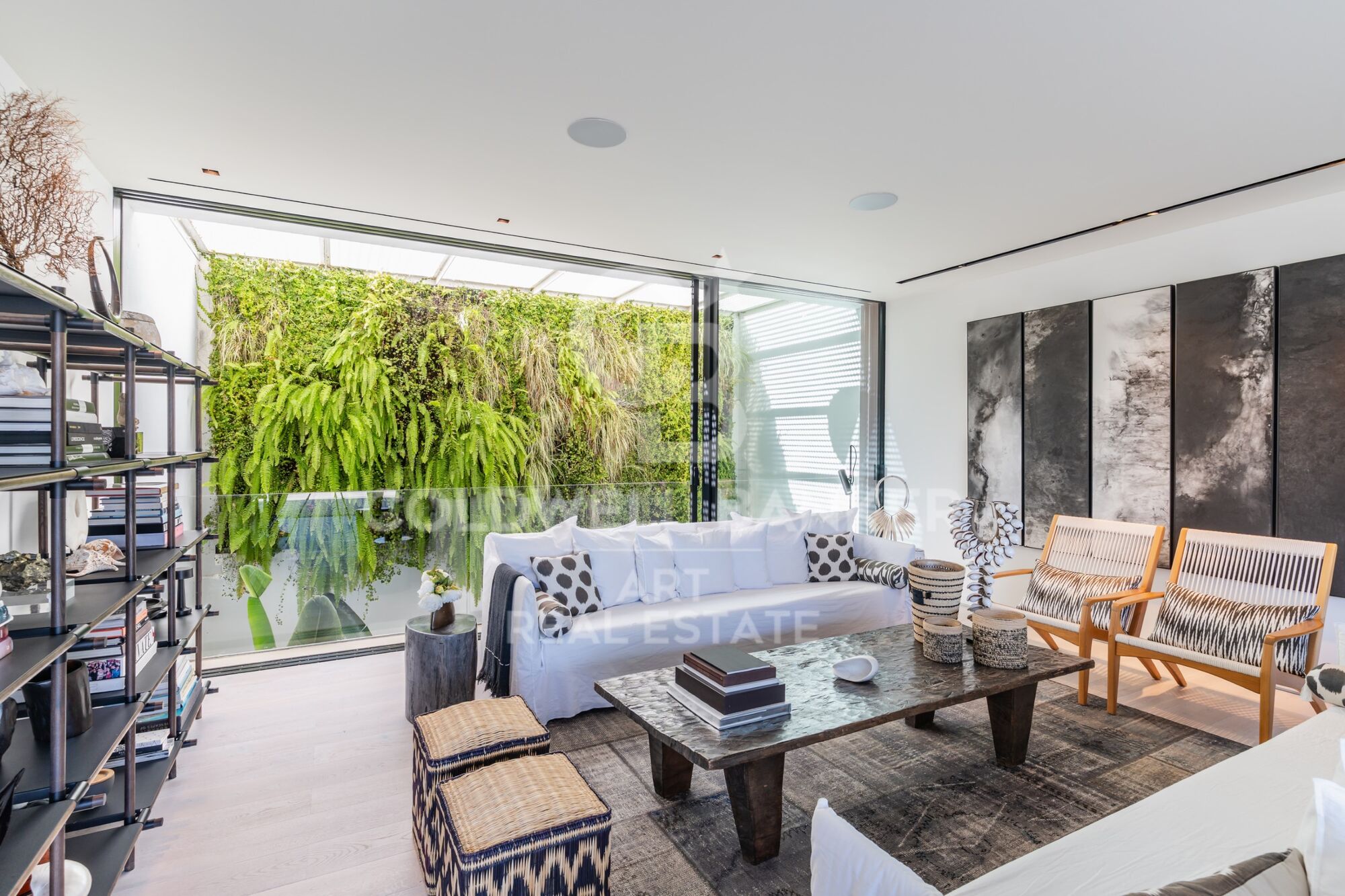 Schon beim Betreten eröffnet sich der Blick auf das Mittelmeer. Die Eingangsebene verfügt über einen großzügigen Wohnbereich sowie mehrere Schlafzimmer, alle zum Meer und zur Landschaft ausgerichtet. Große bodentiefe Fenster und breite Türen lassen viel Tageslicht und die frische Meeresbrise herein und schaffen einen fließenden Übergang zwischen Innen- und Außenbereich.