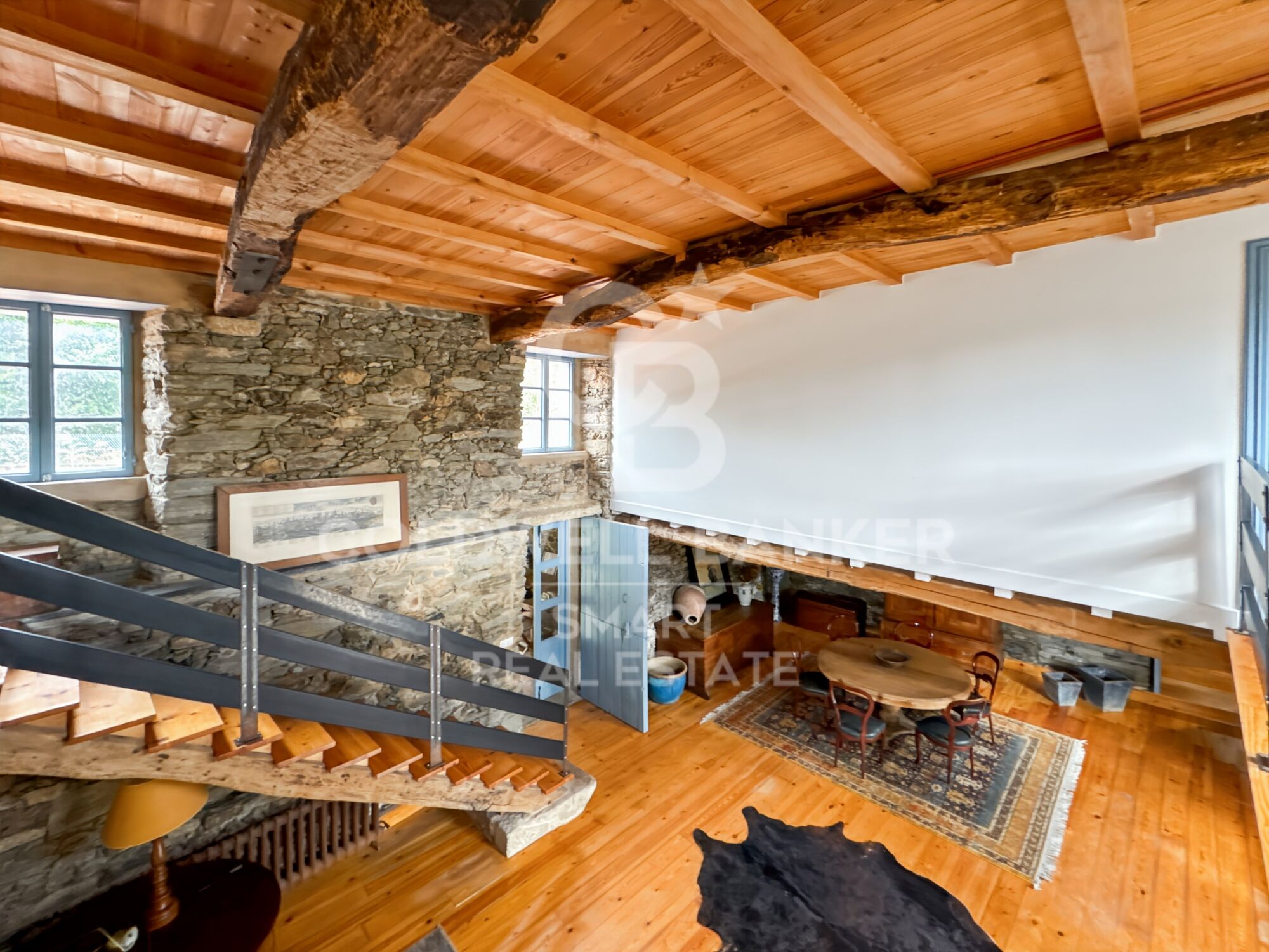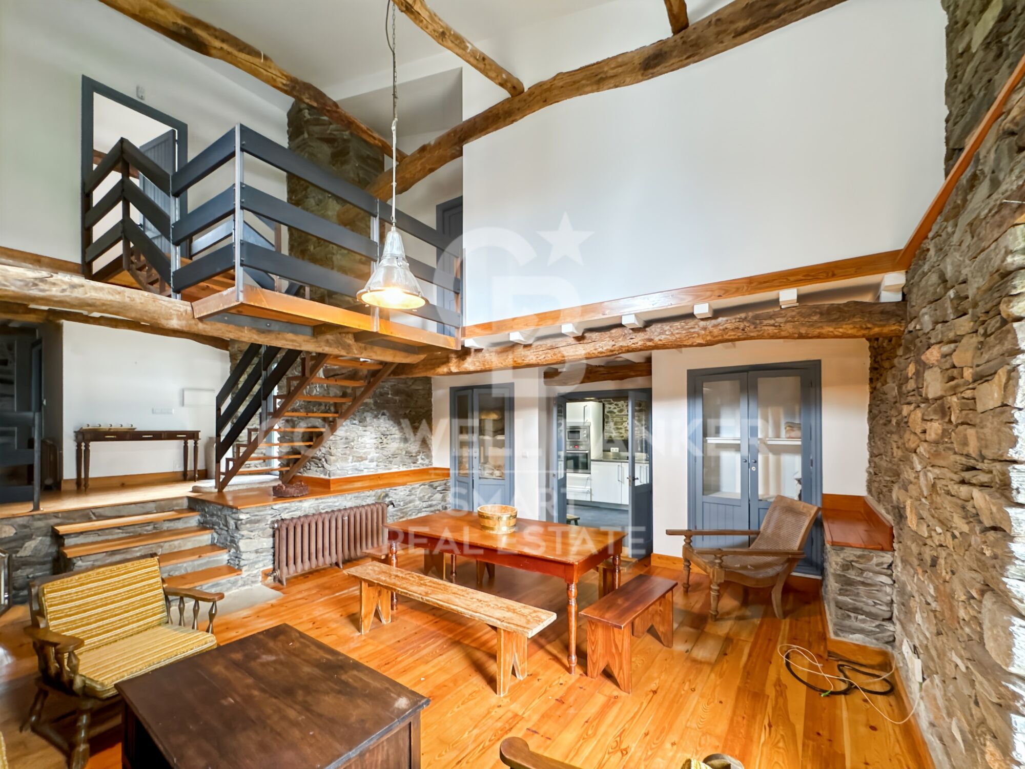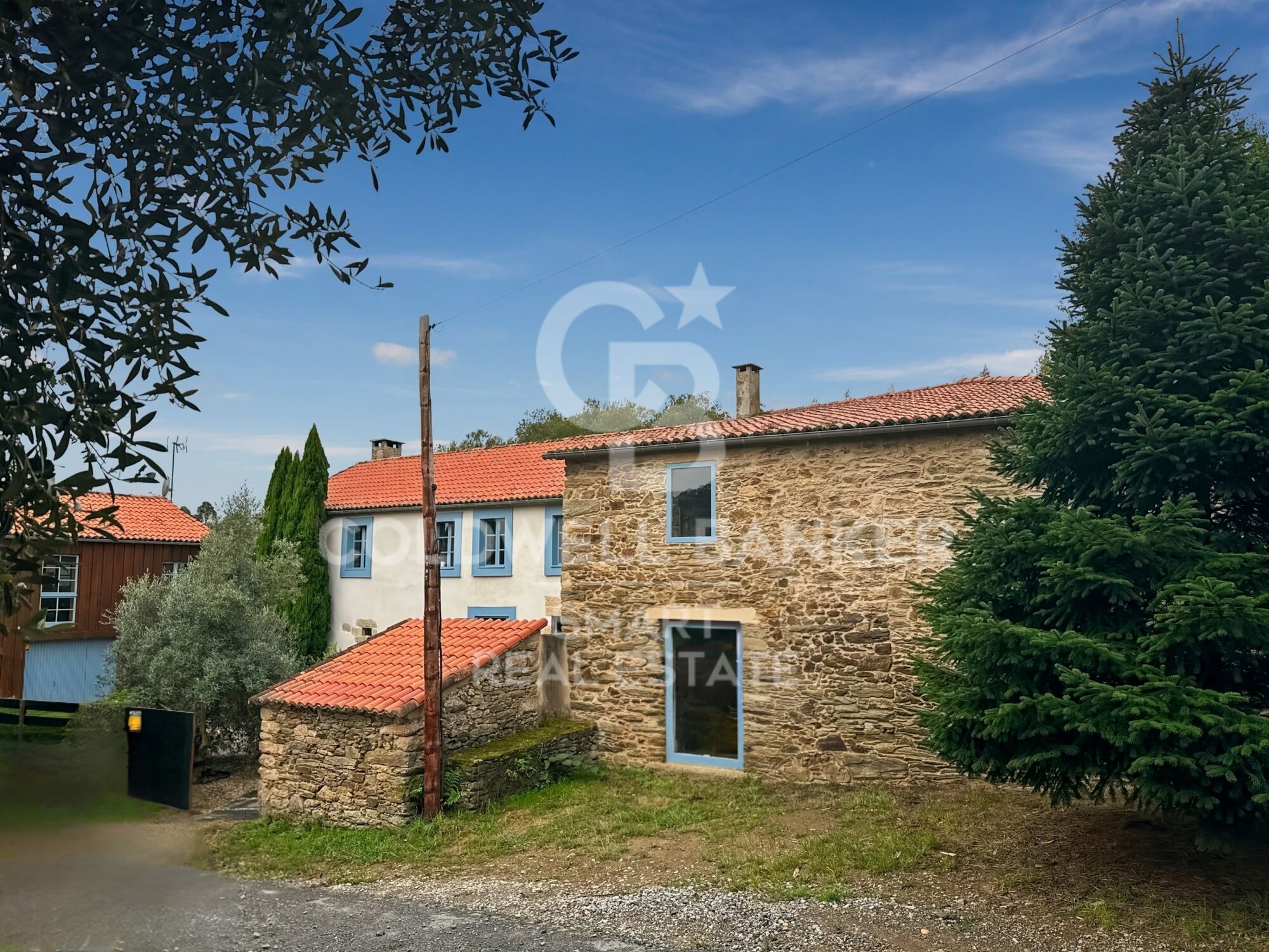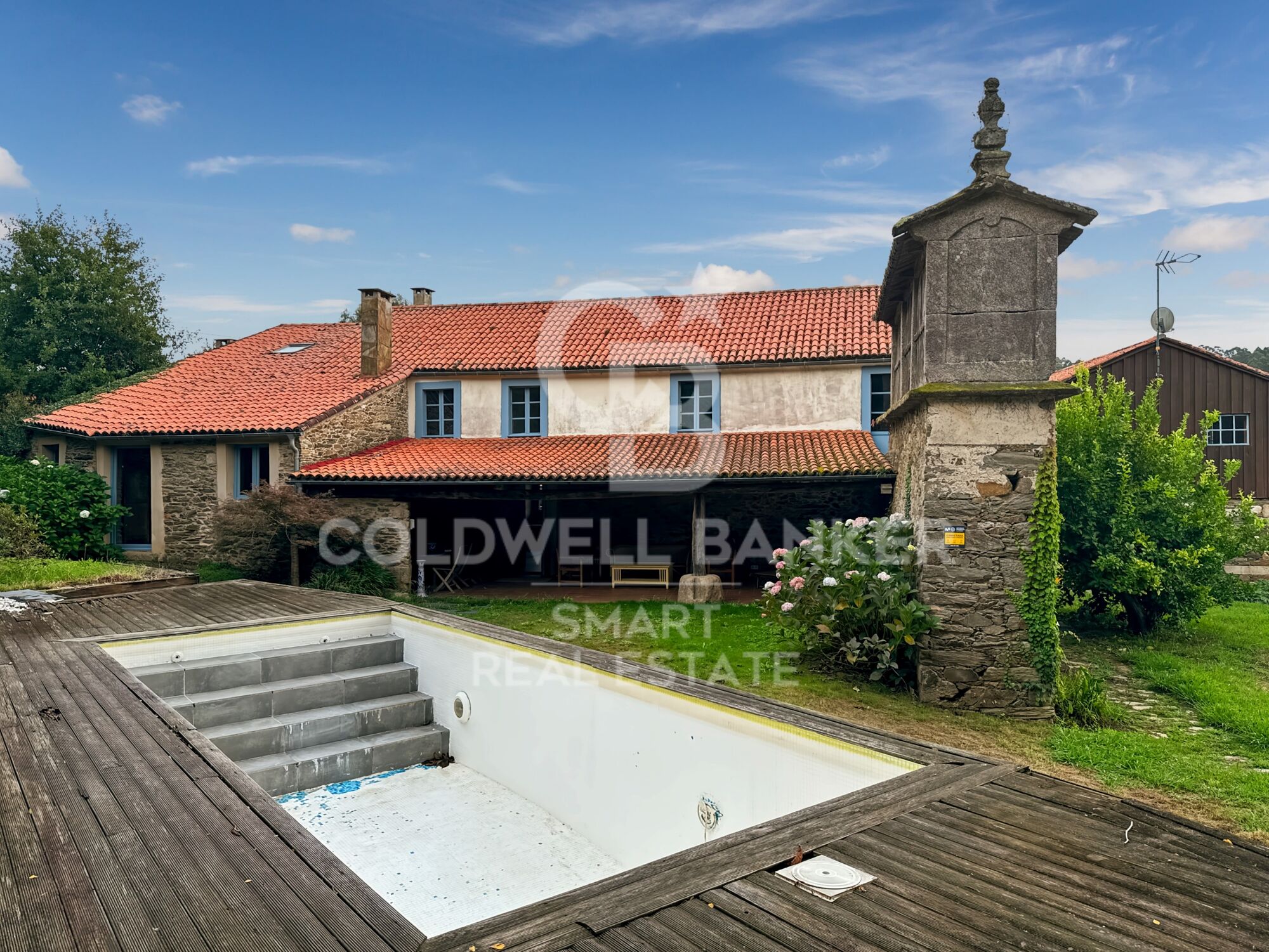 Encantadora casa rústica rehabilitada en Paderne, compuesta por dos edificaciones en piedra gallega sobre una parcela de 2.017m². La vivienda principal (327m²) conserva elementos originales como muros de 60cm, vigas de castaño y suelos de pino de Oregón. Cuenta con amplio salón con chimenea, cocina equipada, 4 dormitorios (3 en suite), varios salones y baños. La casa auxiliar (80m²) incluye cocina-comedor, 2 dormitorios, 2 baños, salón y despacho.
