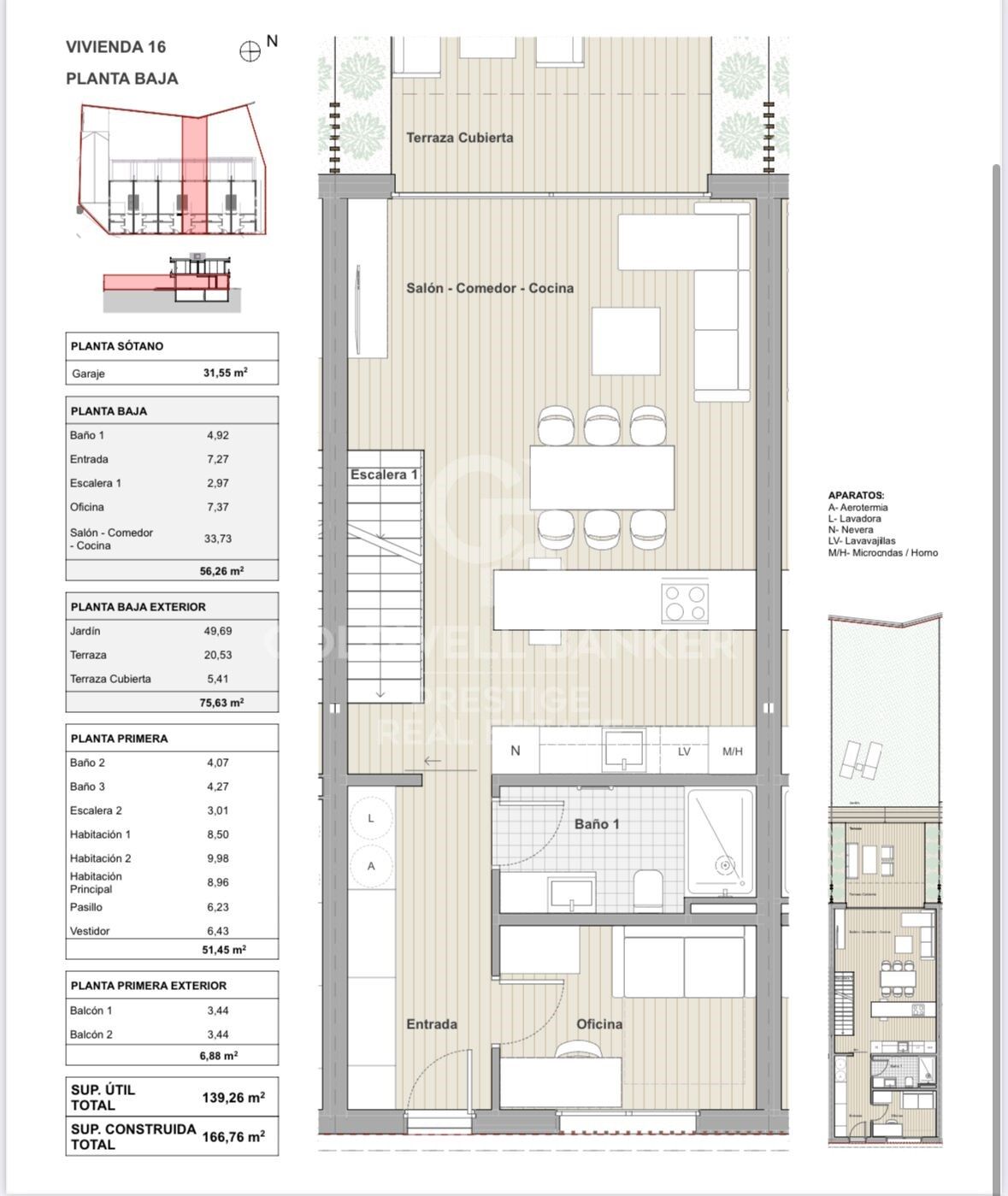 Jedes Haus verfügt über eine Nutzfläche von 139,26 m² und eine Gesamtbaufläche von 166,76 m², verteilt auf drei Etagen:
