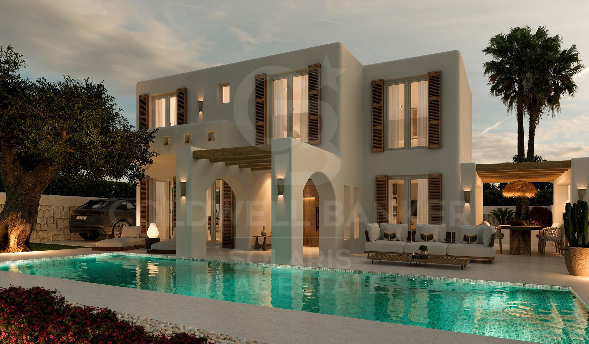 La villa cuenta con una superficie construida de 116 m², distribuidos en tres amplios dormitorios y tres baños modernos, diseñados con materiales de alta calidad y una cuidada atención al detalle. Los grandes ventanales inundan los espacios de luz natural y ofrecen unas magníficas vistas a las montañas y al entorno natural que rodea la vivienda.