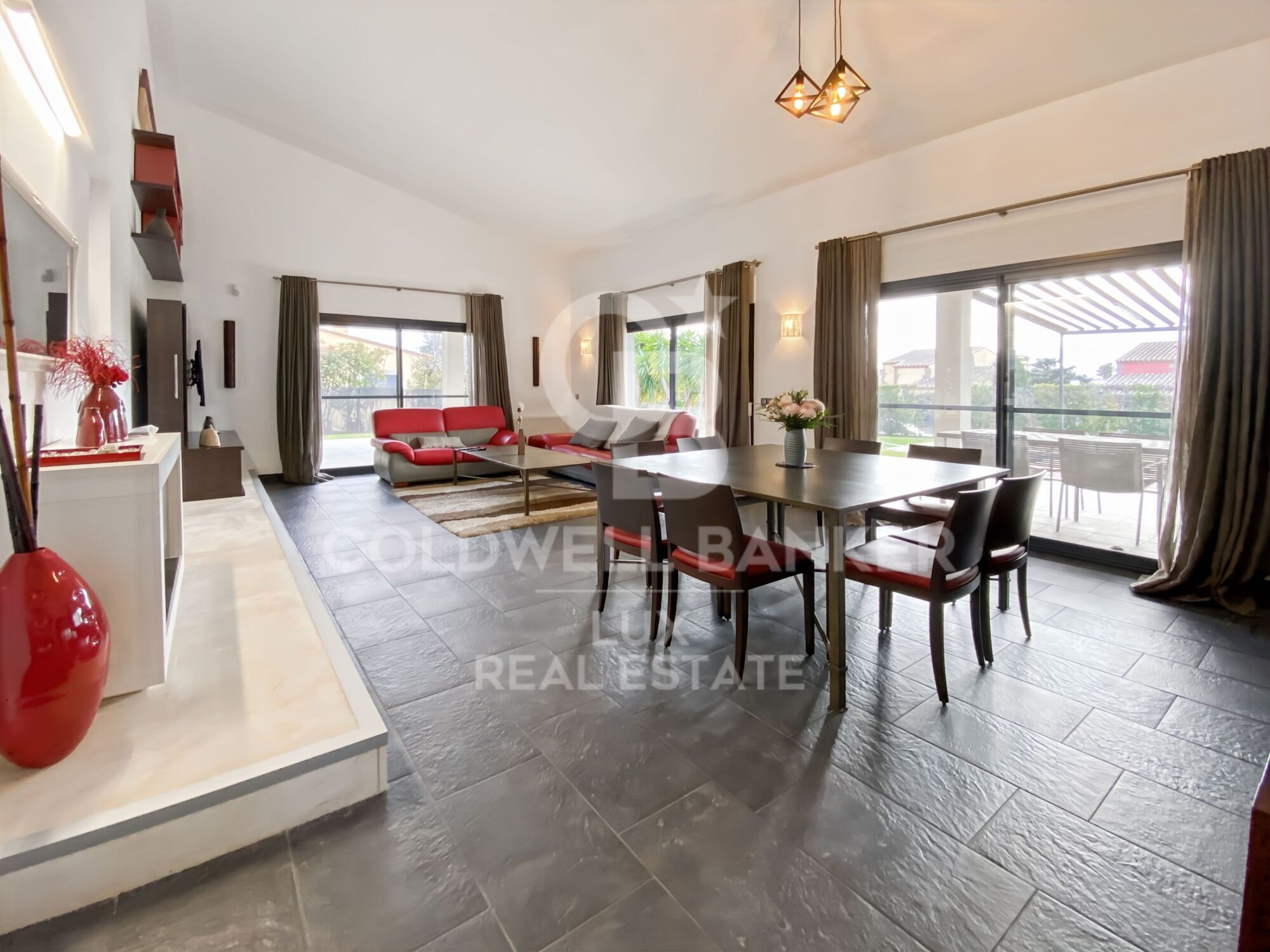 Im Obergeschoss befindet sich ein offener Bürobereich mit freiem Blick auf das Wohnzimmer, während die Hauptsuite von einem Ankleidezimmer, einem Badezimmer mit Whirlpool-Badewanne und Dusche sowie einer privaten Terrasse profitiert.