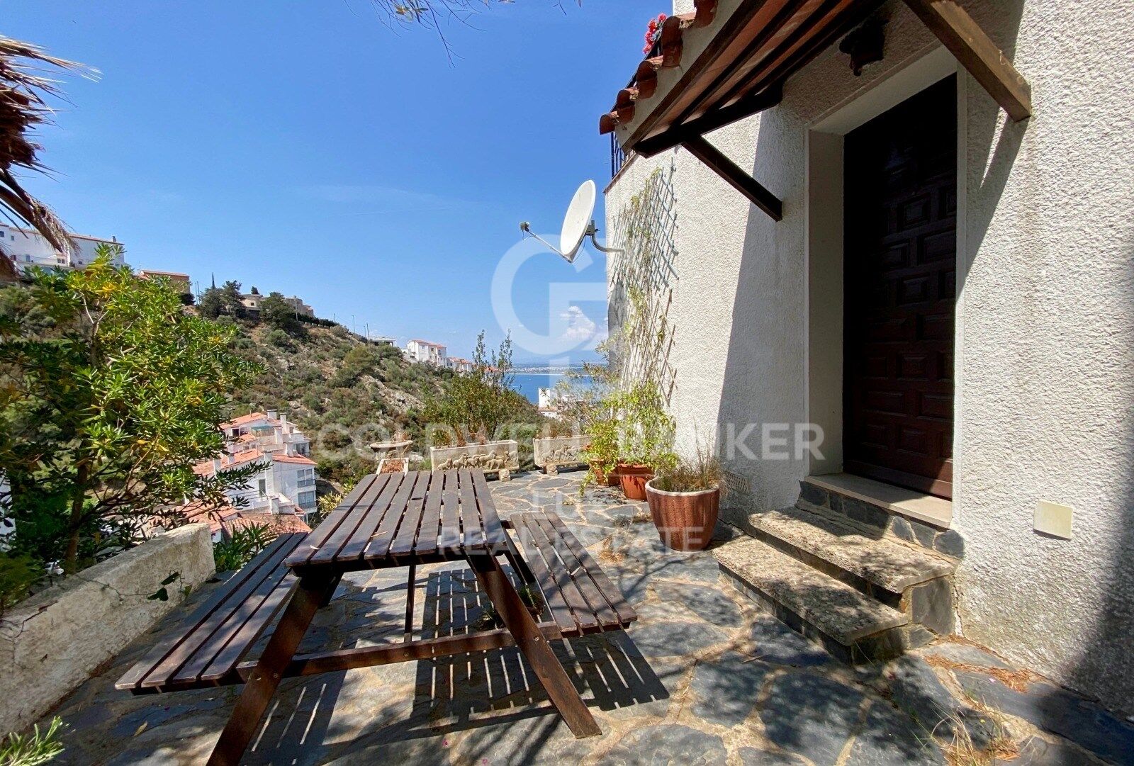 Die Hauptresidenz erstreckt sich über zwei Ebenen und verfügt über ein helles Wohn-Esszimmer mit Kamin und herrlichem Blick über die Bucht von Roses, eine separate Küche, drei Schlafzimmer (zwei mit Zugang zu einer Terrasse), ein komplettes Badezimmer und ein Gäste-WC.