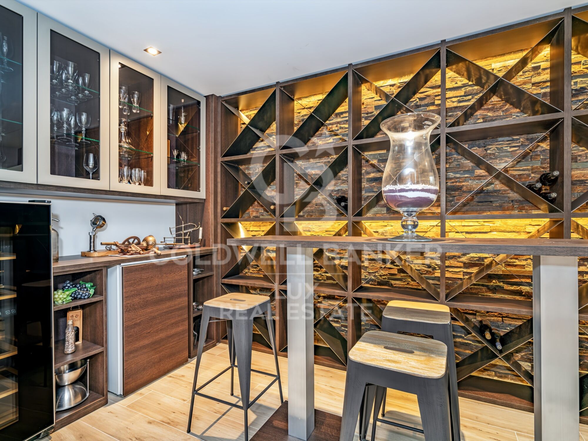 Das Untergeschoss erweitert das Haus um eine große Garage für fünf Fahrzeuge, einen Waschraum, der über Leitungen mit dem Hauptgeschoss und dem Obergeschoss verbunden ist, einen Keller, ein Spielzimmer mit Kino sowie eine völlig unabhängige Dienstwohnung mit Wohnzimmer, Schlafzimmer und Badezimmer.