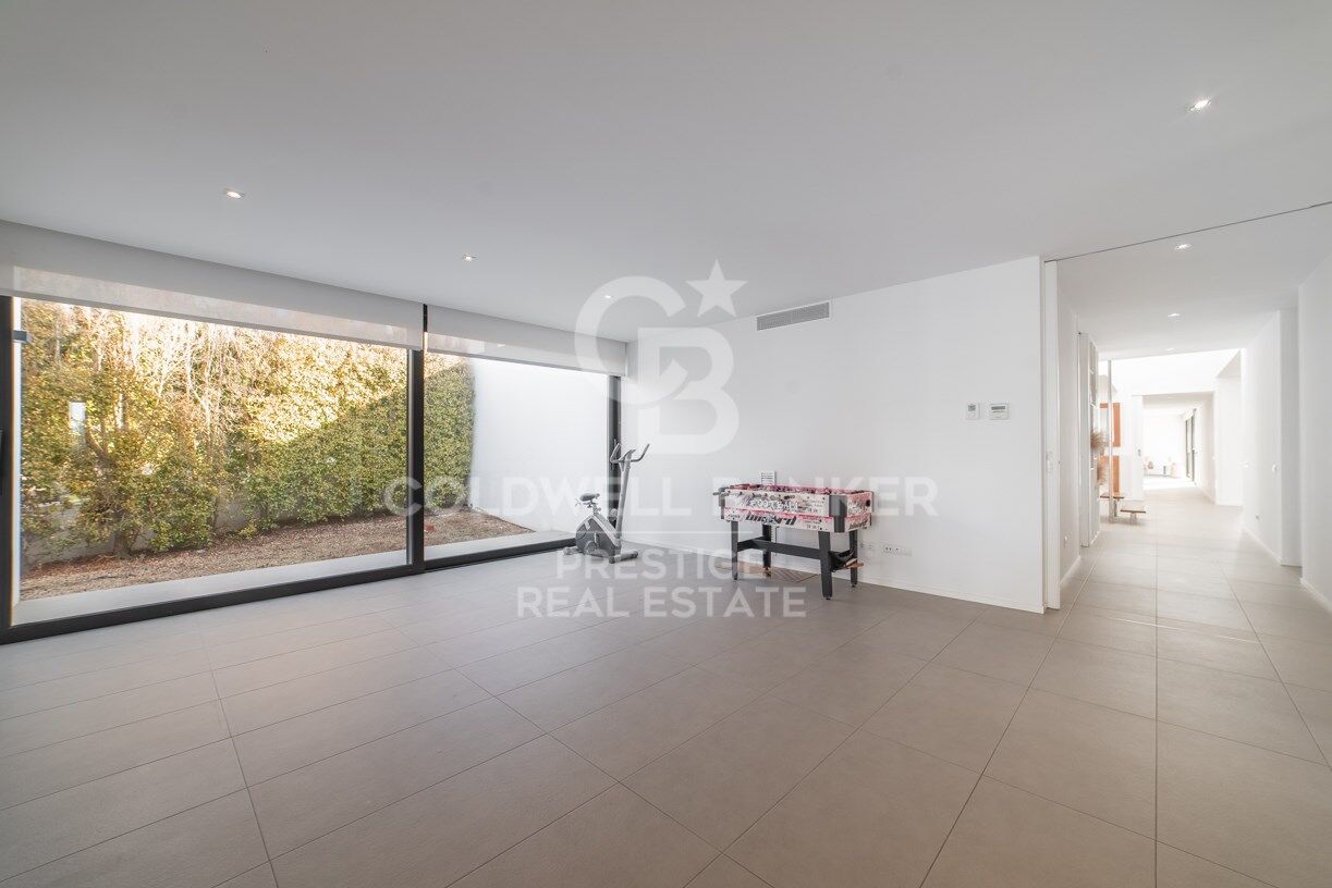 Detrás de la villa, bajo el garaje, encontramos un espacio en el sótano que puede ser utilizado como club, espacio de almacenamiento, sala de televisión, gimnasio,.