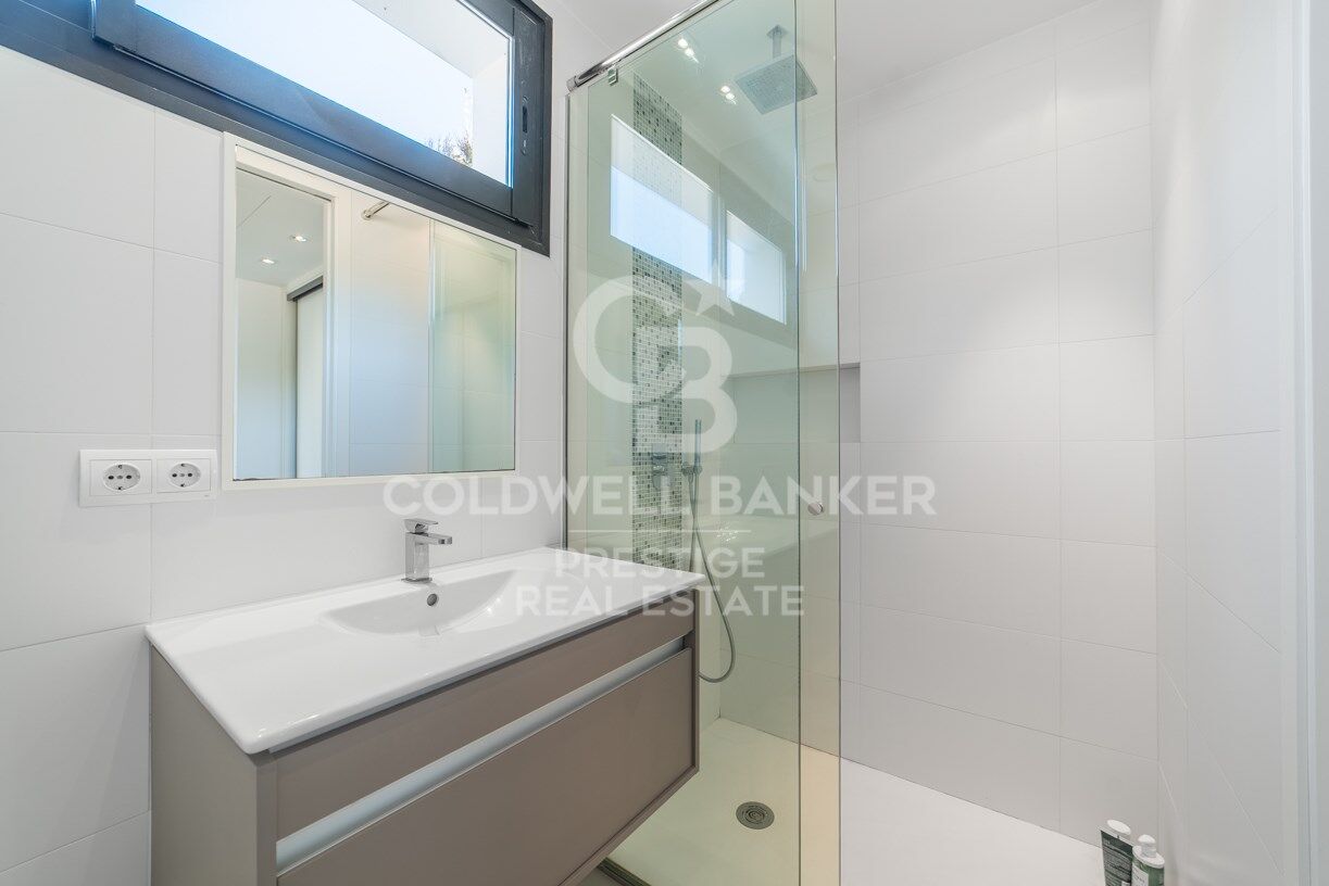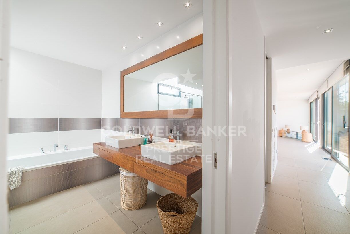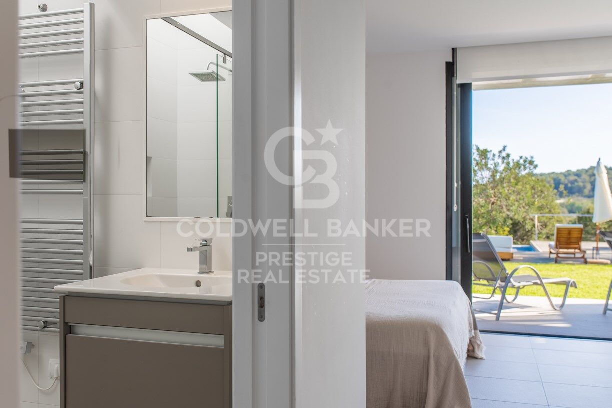 La propiedad está rodeada de terrazas, césped y plantas maduras, y si frente a la suite en la primera planta, tenemos una amplia terraza en la azotea, que se puede convertir en un hermoso chill-out.