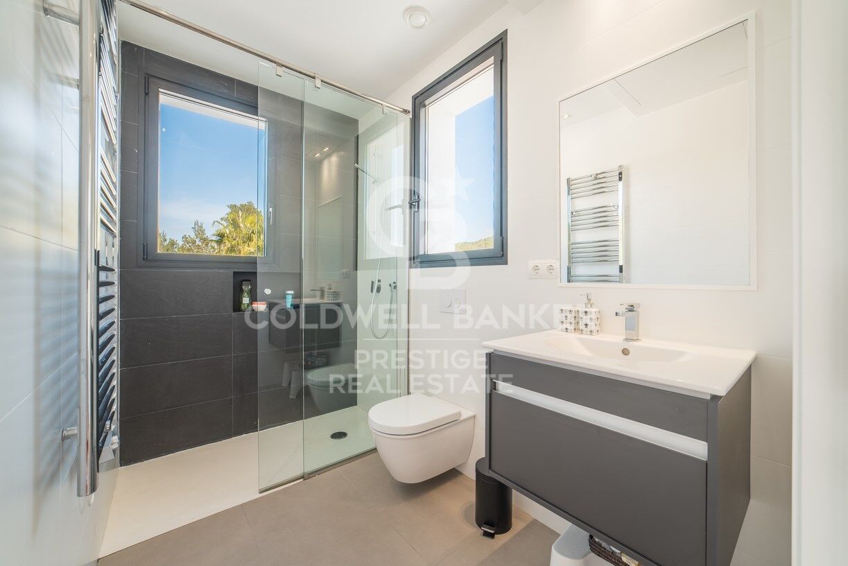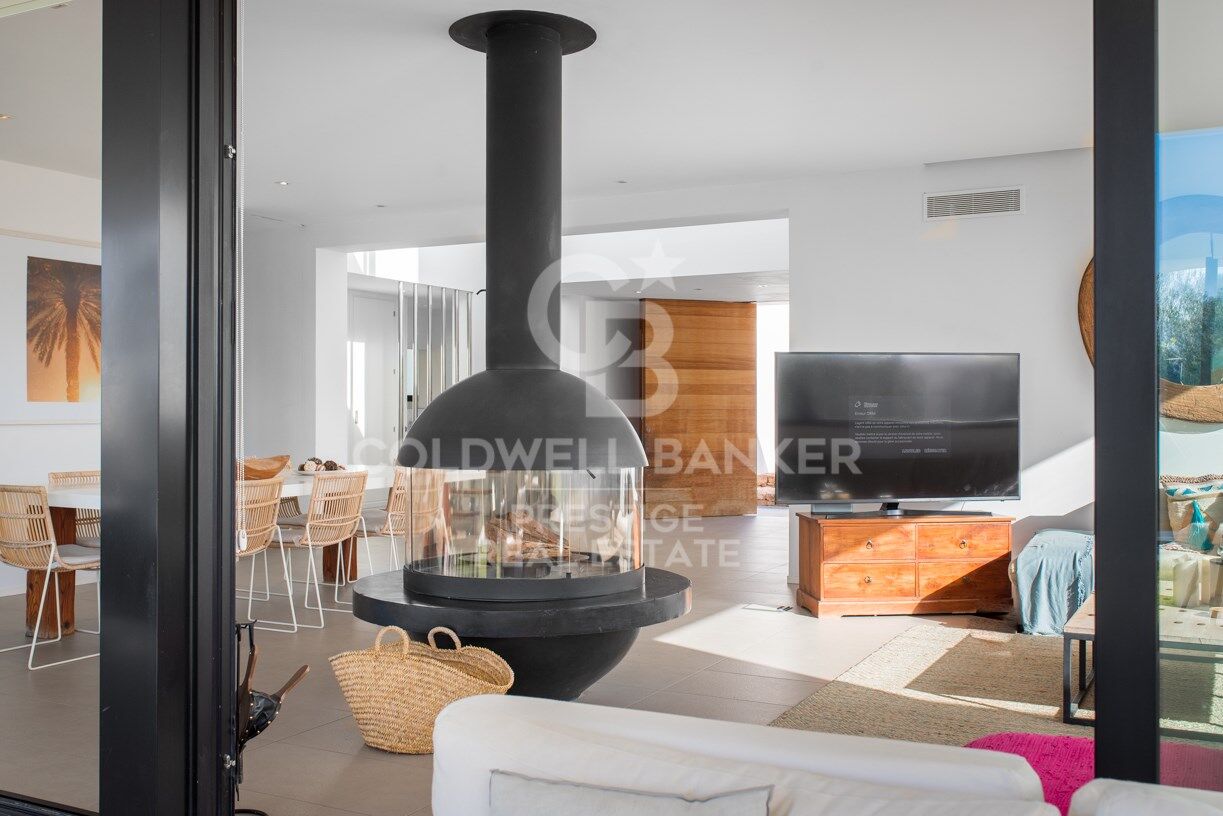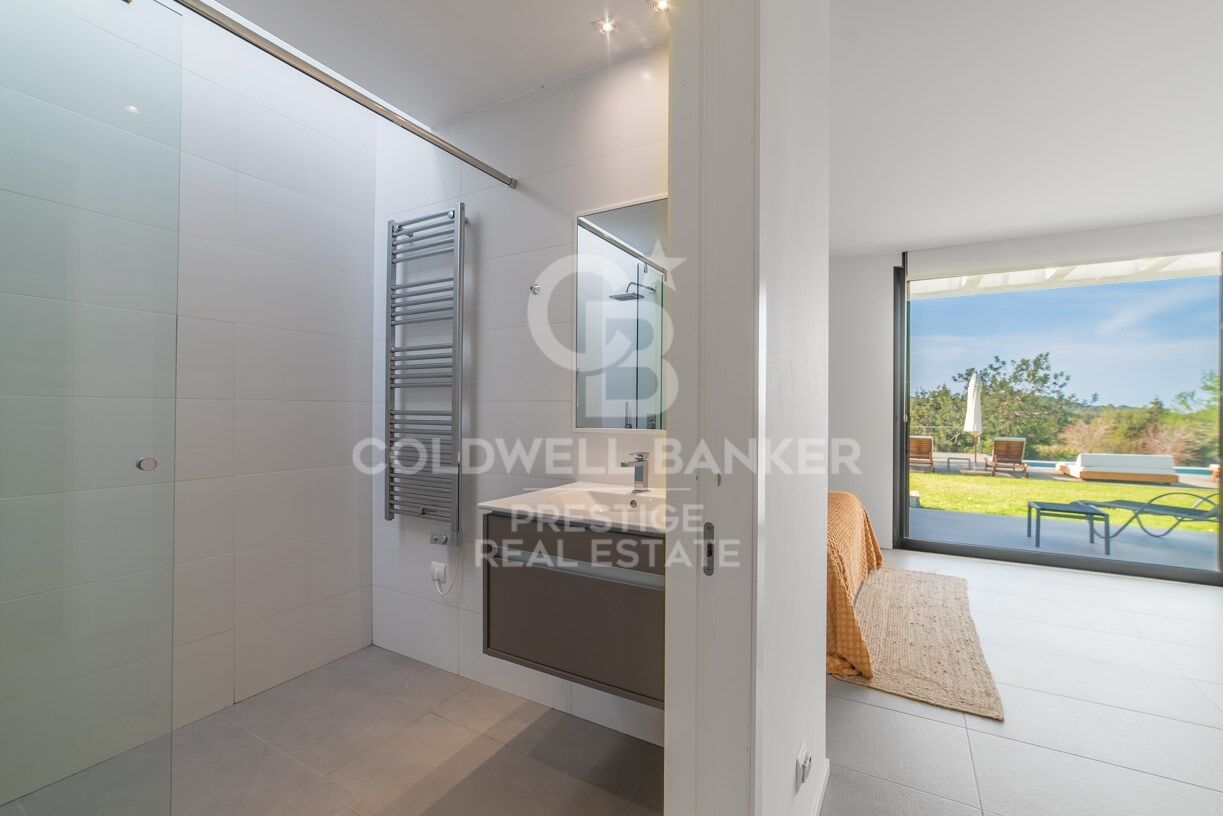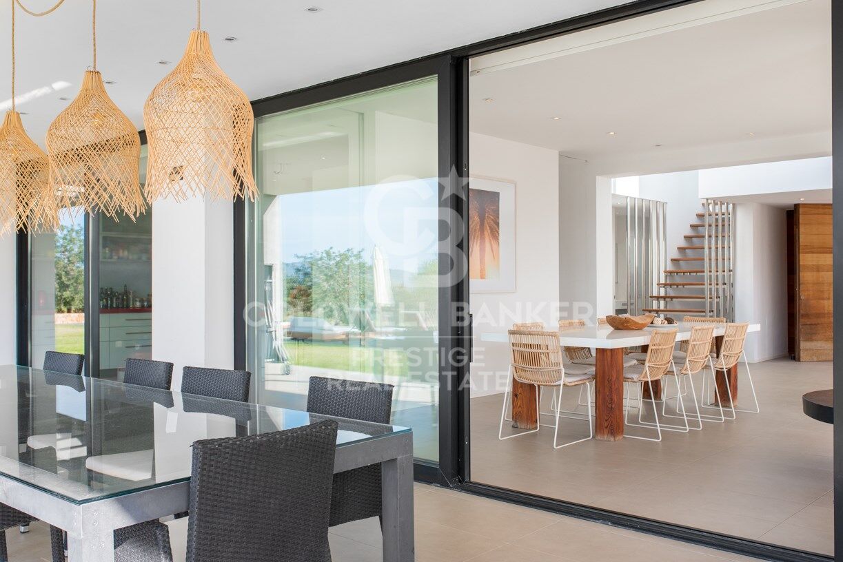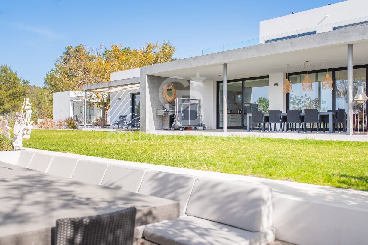 Esta luminosa y moderna villa se encuentra a sólo 10 minutos de San José y 15 de la ciudad de Ibiza, en el hermoso y tranquilo valle de Benimussa. La villa está orientada al oeste para una perfecta exposición al sol durante todo el año y ofrece un montón de espacio para entretener a amigos y familiares o para que los niños jueguen.