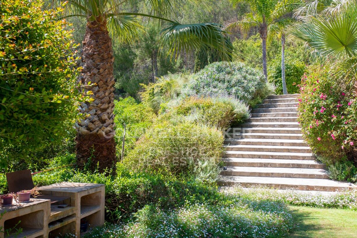 Das Grundstück von ca. 35.000 m2 bietet viele Ecken zum Entspannen, Spielen und Unterhalten. Der Swimmingpool von ca. 100 m2 mit Wasserfall befindet sich ca. 25 m vom Haupthaus entfernt, im hinteren Garten, auf einem Doppelboden. Von der Poolterrasse aus haben Sie einen wunderschönen Meerblick und genügend Platz für Sonnenliegen und eine kleine Poolbar. Rund um das Haus gibt es Rasen und viele Blumen, Sträucher und kleine Bäume. Der größte Teil des Grundstücks wird von Pinien dominiert.