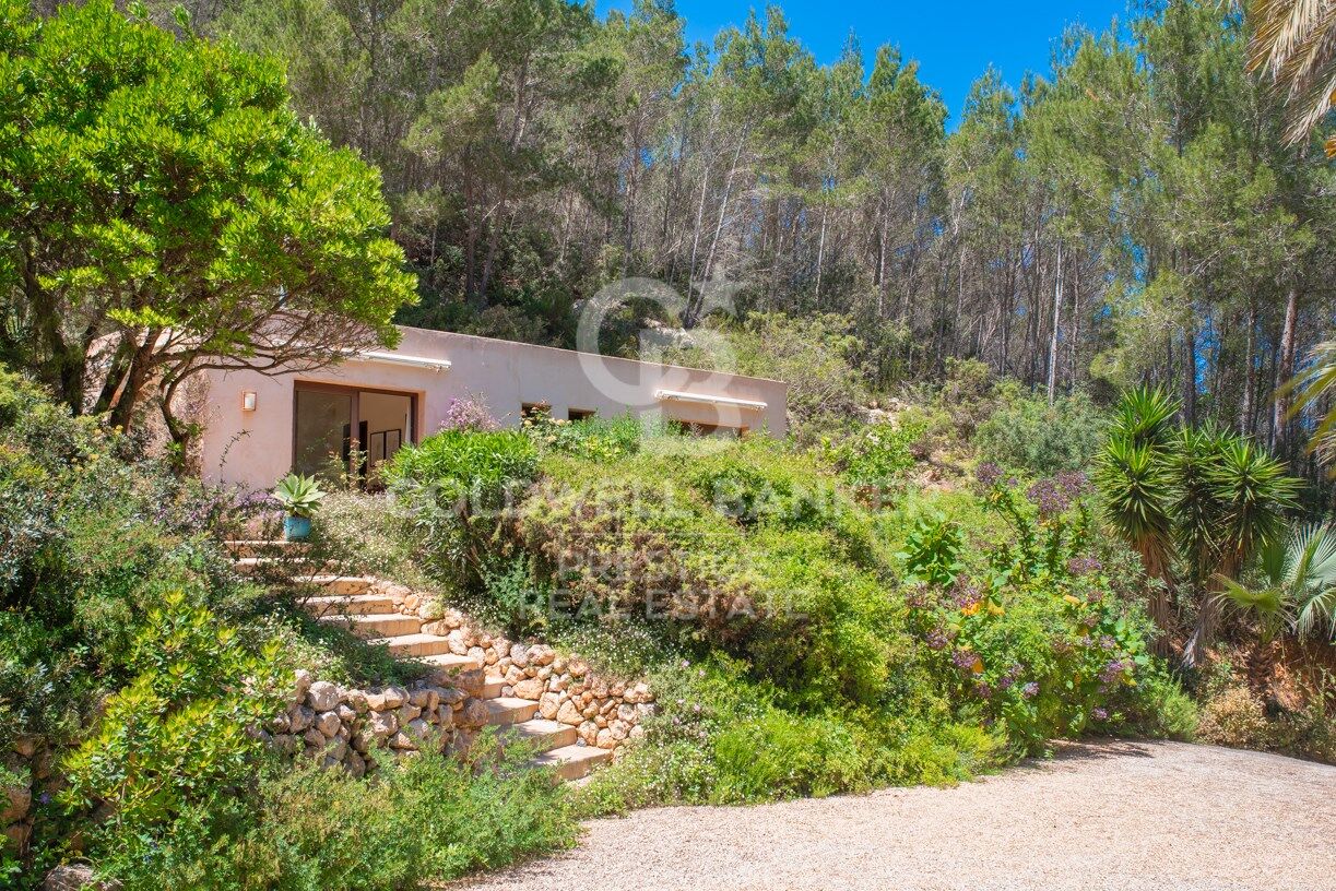 Dieses einzigartige Anwesen befindet sich auf der Ostseite der Insel Ibiza, auf einem privaten Hügel. Die Ausrichtung des Haupthauses ist Ost/Nordwest. Das ganze Jahr über können Sie die schönsten Sonnenaufgänge sehen, aber auch den Vollmond, der aus dem Wasser aufgeht, ein wunderbares Schauspiel. Darüber hinaus gibt es einen freien Blick auf das Morna-Tal, das Meer an der Ostküste der Insel und einen Teil der Insel Tagomago.