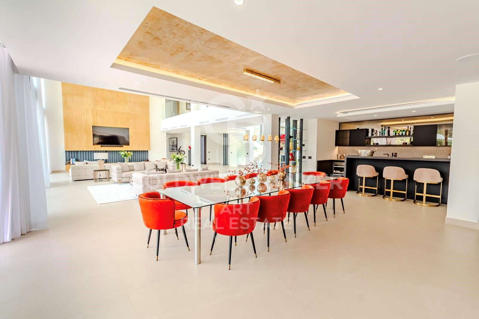 Die Residenz wurde sowohl mit Blick auf Komfort als auch auf Stil entworfen und verfügt über eine Vielzahl von Wohnbereichen im Innen- und Außenbereich. Im Zentrum befindet sich eine hochmoderne Gaggenau-Küche mit zentraler Insel, die von einer separaten Vorbereitungsküche und einem Grillplatz im Freien begleitet wird - ideal, um Gäste mit Leichtigkeit zu bewirten.