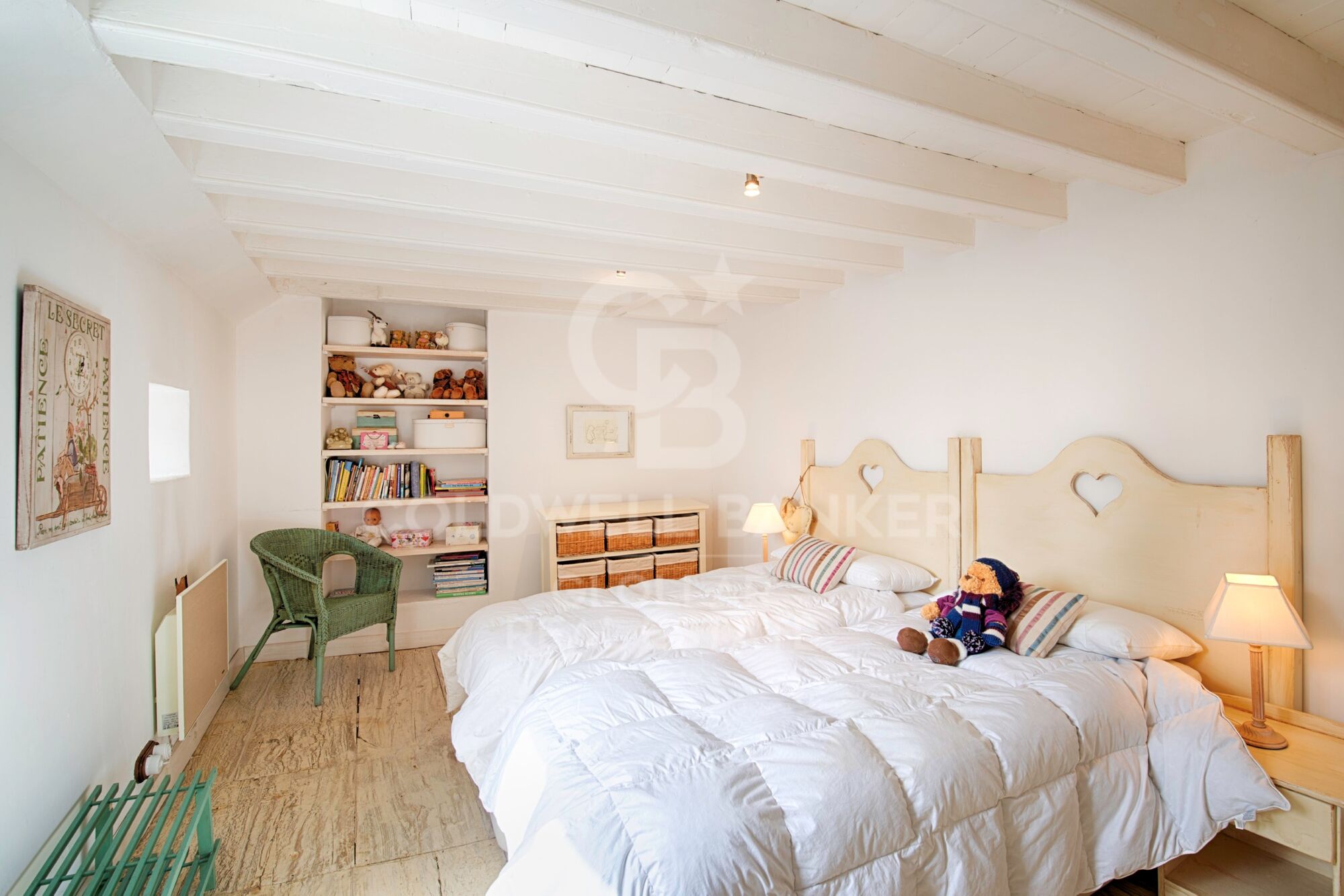 On the upper floor, there is a spectacular living room with high ceilings, exposed wooden beams, a fireplace, and large windows that provide abundant natural light and offer excellent views of the surroundings. The sleeping area includes 4 double bedrooms, two of them master suites; one of the suites has a mezzanine currently used as an office, and another bedroom features an attic space ideal as a playroom, as well as an additional full bathroom. The second building, perfect as a guest house, offers a suite-style bedroom and an additional versatile space. The property is completed with a storage room, laundry area, and parking. A unique opportunity to enjoy a home with history, charm, and all modern comforts in a privileged setting.