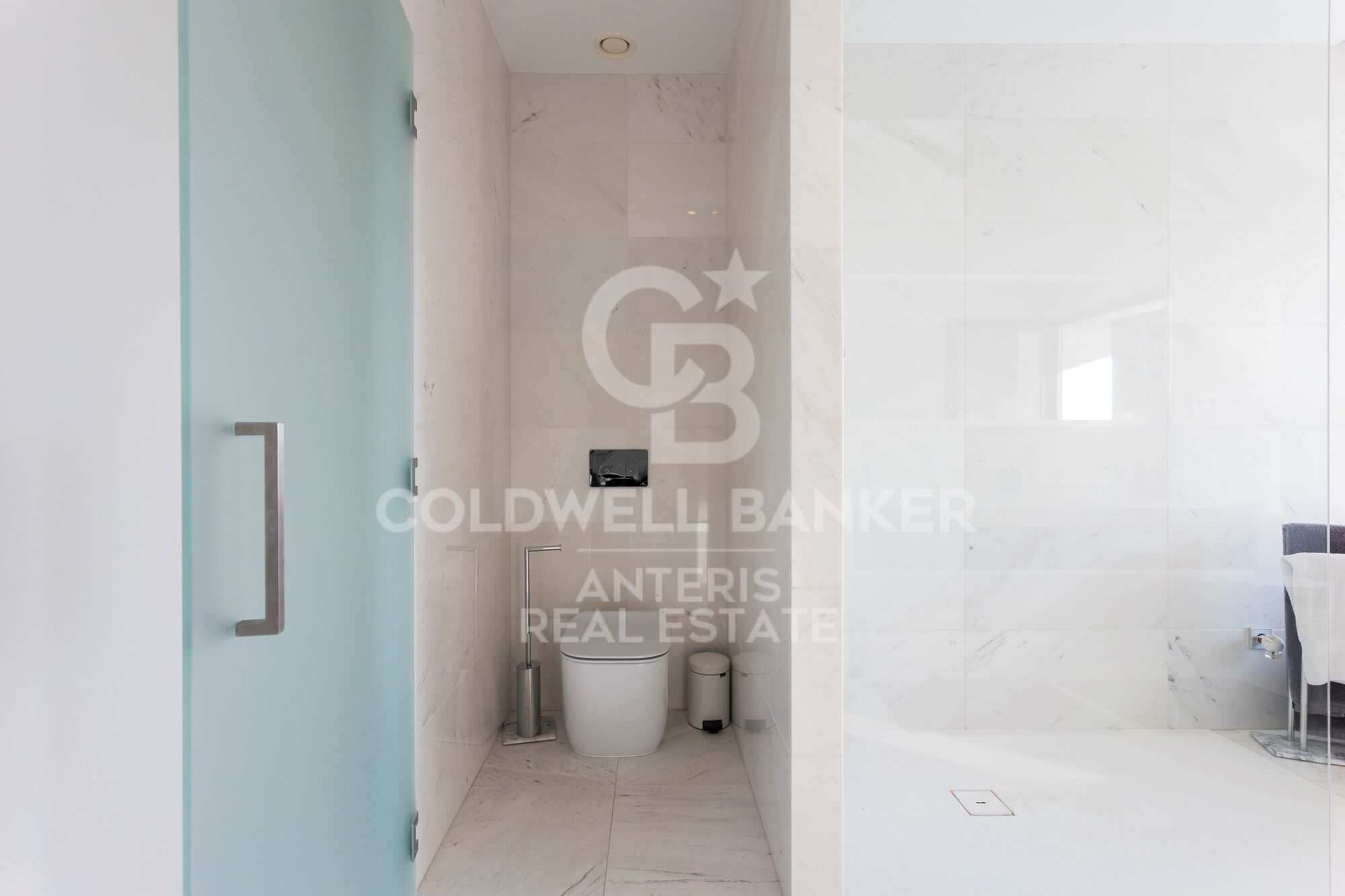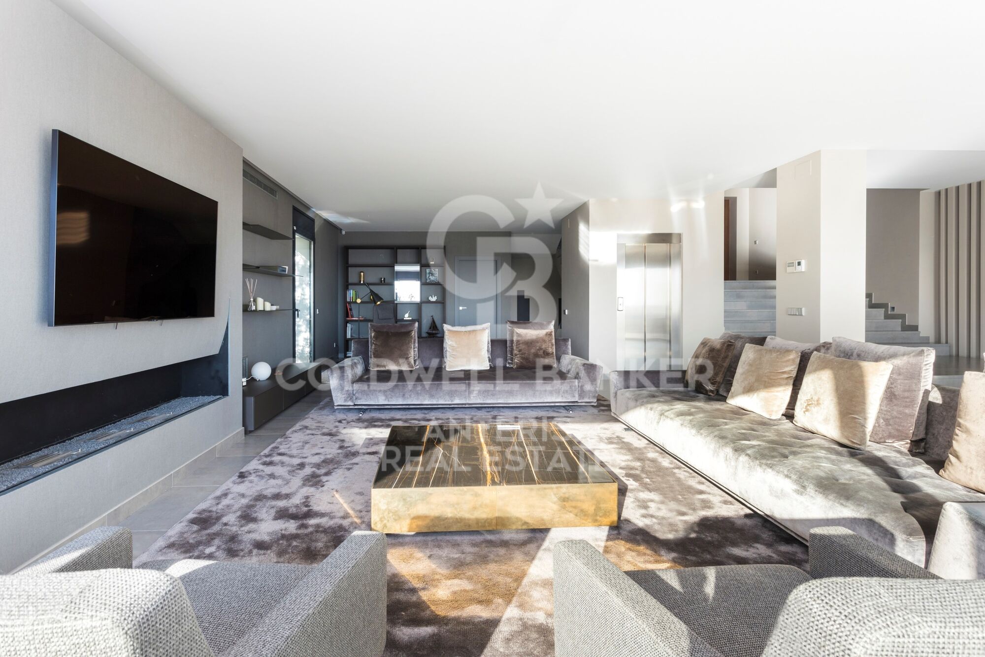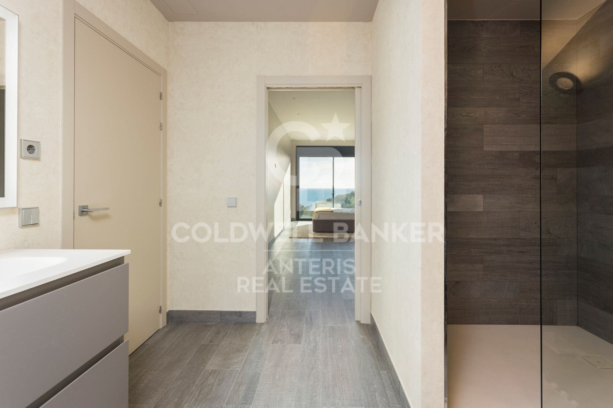 The architecture of the building is characterized by its large windows, which bathe every corner in light, particularly noticeable on the main floor. Here, a spacious living room and a fully equipped designer kitchen with high-quality appliances are found. The kitchen provides access to an additional dining room. The entire floor opens onto a large terrace, offering stunning views. The upper floor houses three double bedrooms, all en suite, and a master suite complete with a dressing room and a bathtub strategically placed to enjoy incredible views through the windows. This suite also offers access to another terrace, ensuring exclusive spaces and comfort on this level.