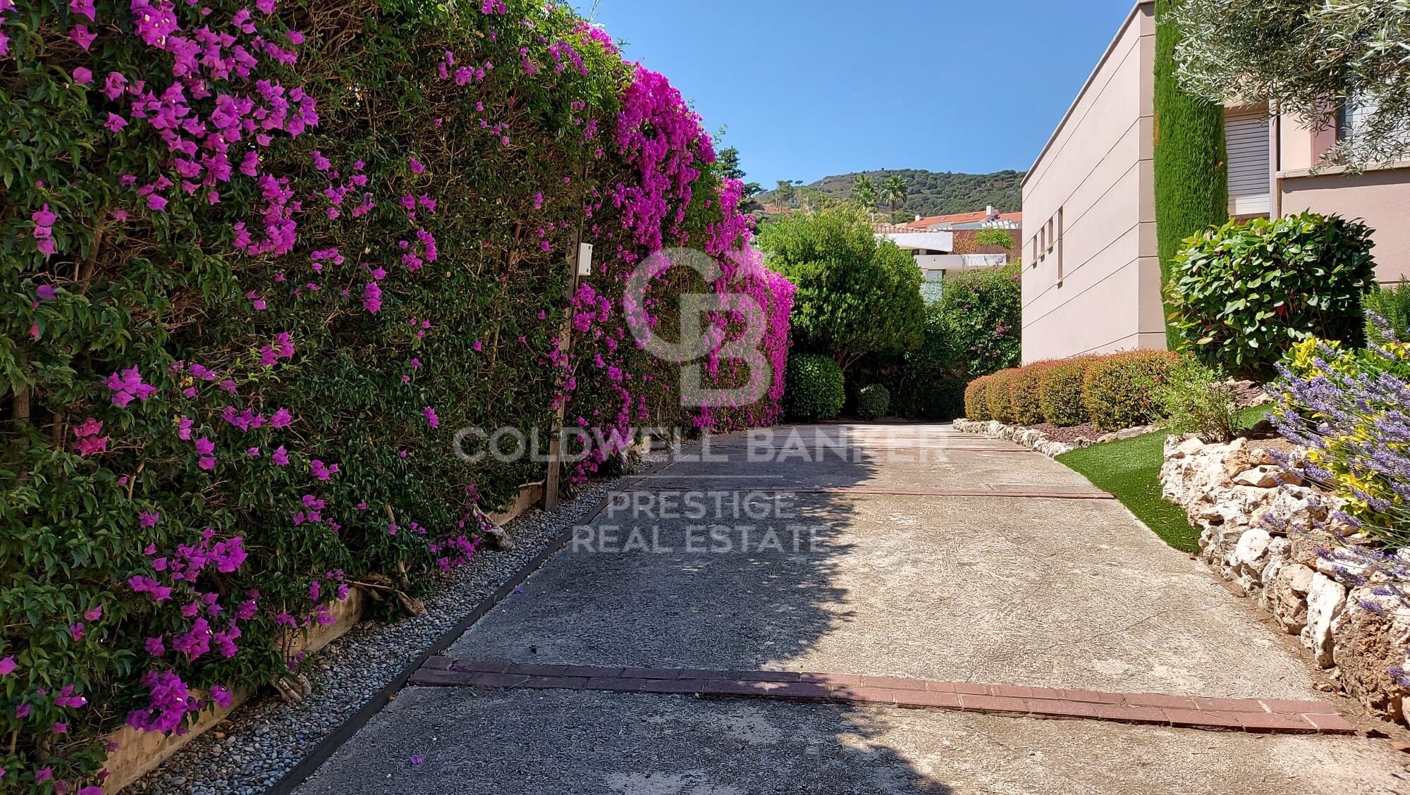 Desde cuatro de las habitaciones tenemos acceso a una amplia terraza con vistas al mar, y a la zona verde protegida justo en frente de la propiedad.