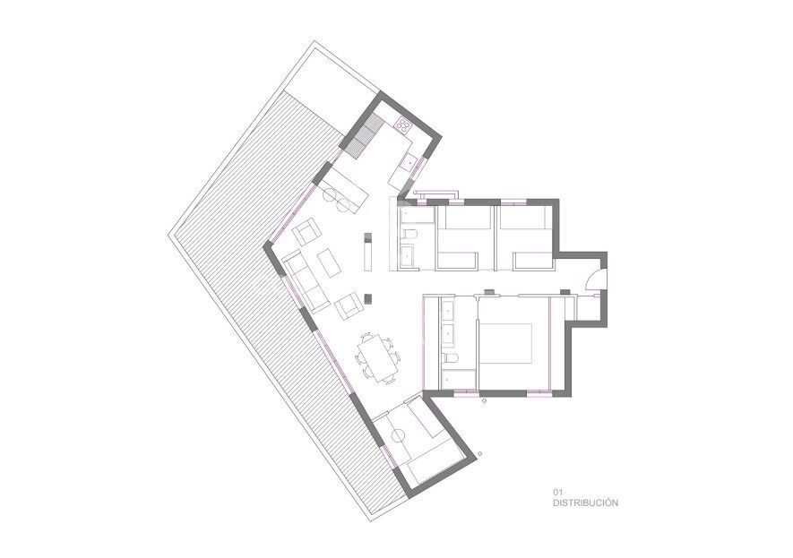 Die Wohnung bietet absolute Privatsphäre und einen freien Panoramablick, da die angrenzenden Gebäude niedriger sind. Die spektakuläre Terrasse ist das Herzstück des Penthouses: ein sonniger, großzügiger und vielseitiger Bereich, ideal für Relaxzonen, einen Essbereich im Freien, einen urbanen Garten oder alles, wovon Sie schon immer geträumt haben. Zudem gibt es einen 5 m² großen Abstellraum, perfekt für zusätzlichen Stauraum.