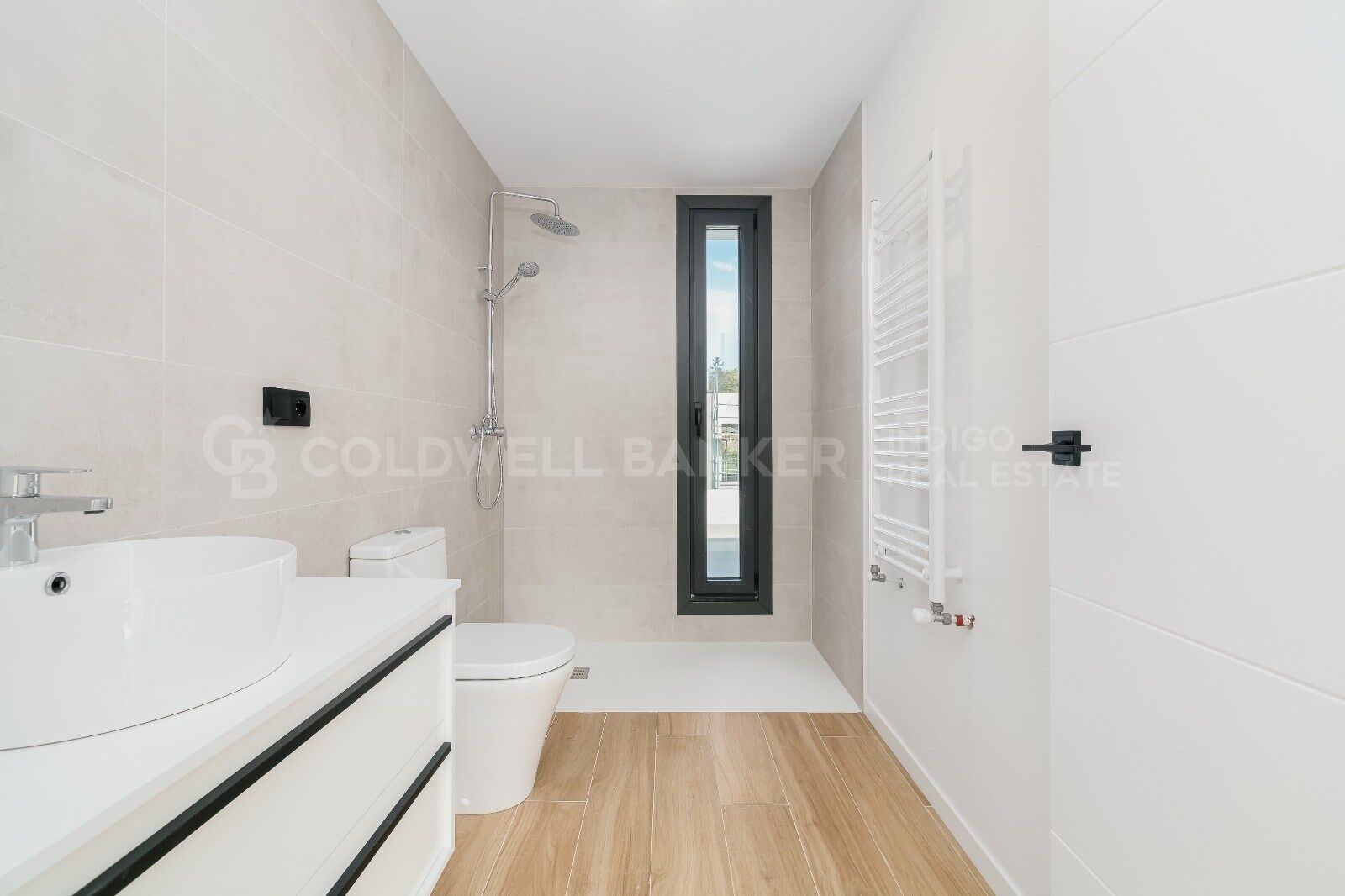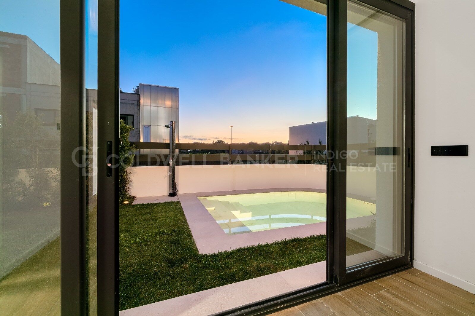 Es verfügt über 4 Schlafzimmer und 3 Badezimmer, eines davon en suite, die auf maximalen Komfort ausgelegt sind. Der Grundriss ist hell und fließend, mit einer guten Verbindung zwischen Innen und Außen dank der raumhohen Fenster.