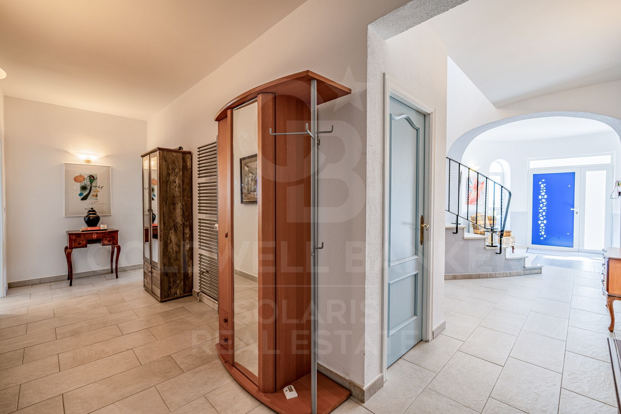 La vivienda principal recibe con un distinguido vestíbulo que marca el carácter de la propiedad. Una refinada escalera de mármol conduce a la planta superior, donde se encuentra la suite principal: un espacio íntimo y luminoso con terraza privada, vestidor independiente y un baño concebido para disfrutar de las vistas con total confort.
