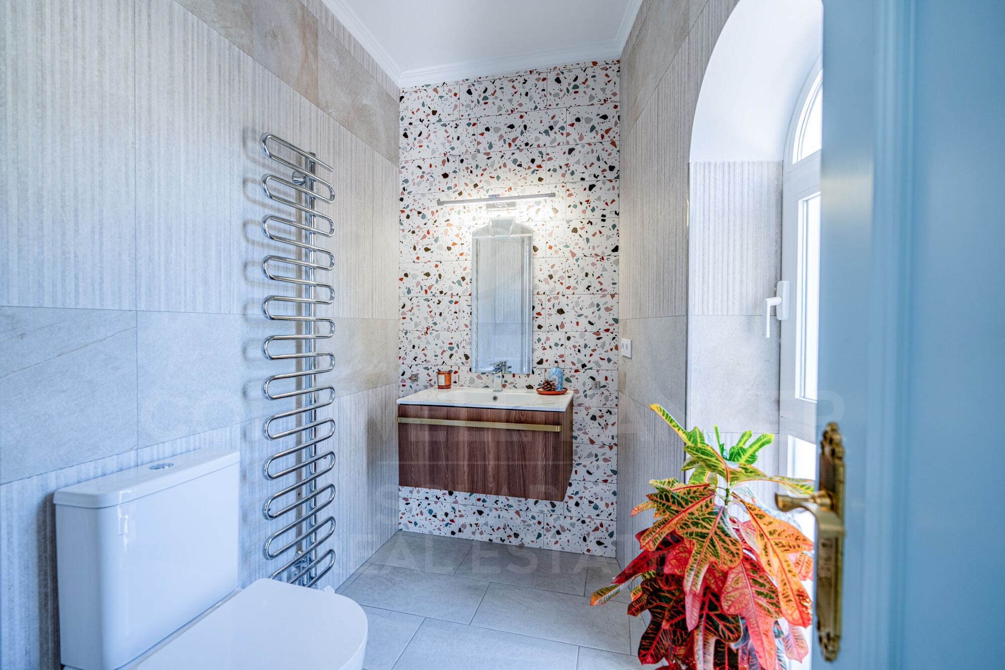 La cocina independiente, luminosa y funcional, tiene acceso directo a un encantador patio de estilo andaluz, un rincón íntimo y acogedor perfecto para momentos de tranquilidad.