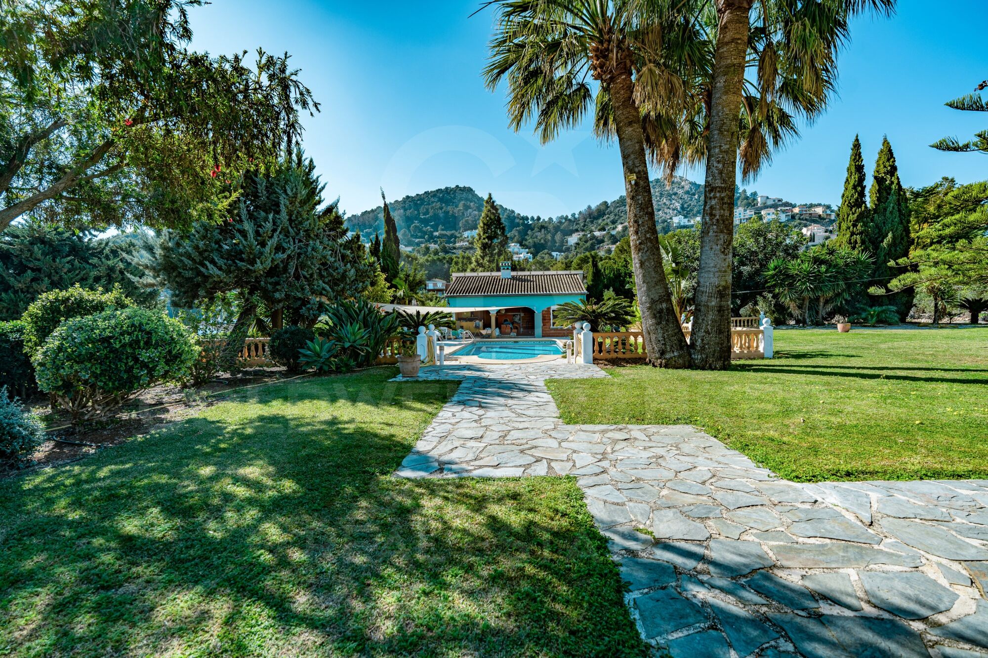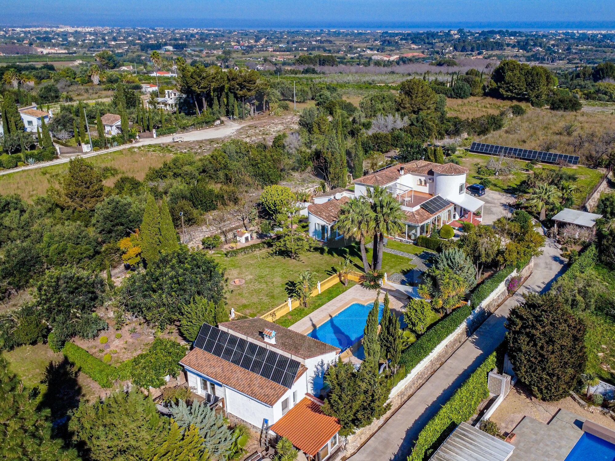 El exterior ha sido concebido para disfrutar plenamente del clima mediterráneo. La amplia parcela garantiza privacidad absoluta y alberga una gran piscina, acompañada de una zona de ocio con cocina exterior totalmente equipada y barbacoa, ideal para reuniones y veladas al aire libre. Además, la propiedad dispone de una casa de invitados independiente, aportando versatilidad y confort adicional.