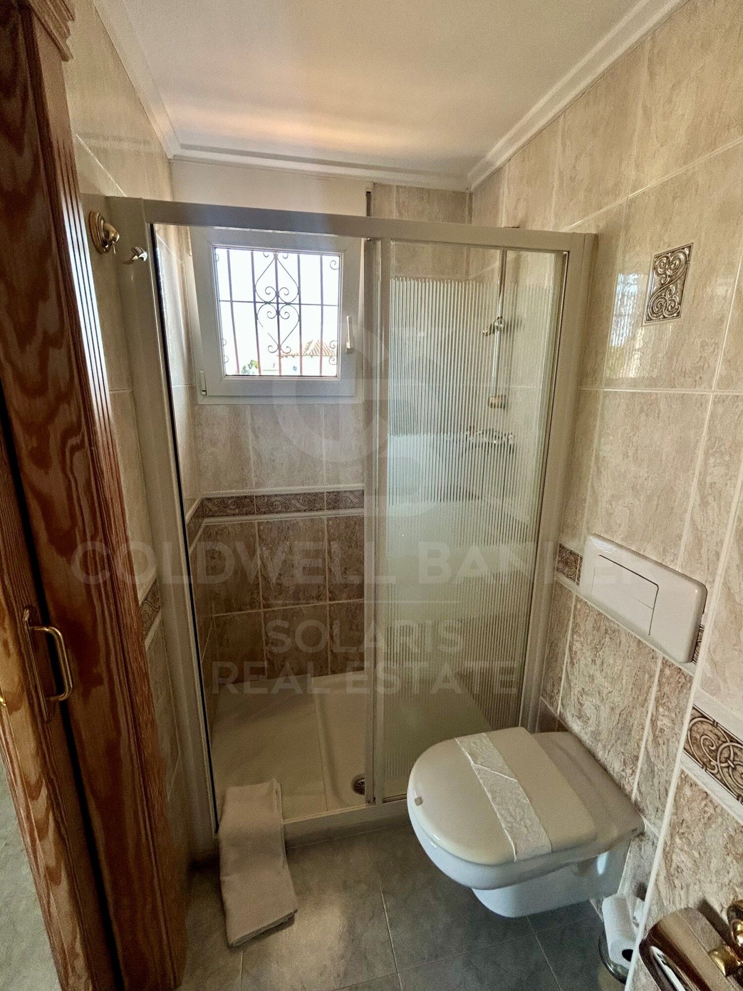 Situada en las tranquilas colinas de Forest Hills, Estepona, esta elegante villa orientada al oeste ofrece impresionantes vistas panorámicas al mar y a las montañas. Rodeada de alcornoques y pinos perennes, disfruta de un entorno verde y frondoso incluso en pleno verano. Forest Hills es una zona residencial tranquila y diversa, habitada todo el año por familias y jubilados de distintas nacionalidades. Los vecinos más cercanos son ingleses y fueron propietarios de uno de los campos de golf más renombrados de la región. A pesar de su ambiente sereno, la zona cuenta con excelentes servicios: club de tenis, gimnasio, escuela de equitación con establos, dos restaurantes locales y una playa a solo cuatro minutos colina abajo. Allí se encuentran un supermercado, gasolinera, Beso Beach Club, el recién inaugurado Sublim Beach Club en Laguna Village y el hotel de 5 estrellas Kempinski con todas sus instalaciones. Ubicada en la prestigiosa Nueva Milla de Oro, la villa está a solo 5 minutos en coche de Estepona, 15 minutos de Puerto Banús y 20 minutos de Marbella. Los aeropuertos de Málaga y Gibraltar están ambos a tan solo 40 minutos, lo que ofrece una excelente conexión en ambas direcciones. La arquitectura combina un diseño andaluz contemporáneo con materiales naturales que armonizan con el entorno. Distribuida en dos niveles, la vivienda cuenta con tres suites de dormitorio dobles situadas entre las copas de los árboles, con elegantes baños que combinan pizarra natural, madera y cristal. La suite principal, de 40 m², es más grande que un piso de dos habitaciones en el centro de Londres, y se abre a una amplia terraza privada con tumbonas y vistas cautivadoras. La villa fue diseñada en torno a un par de puertas antiguas de iglesia, de gran tamaño, que crean una entrada impactante. El salón principal y el comedor, de 50 m², tienen techos inclinados, una torre de 10 metros de altura y grandes ventanales que llenan el espacio de luz natural. Desde aquí se accede a dos terrazas: una para comer al aire libre junto a la cocina y otra orientada al sur para relajarse mientras se disfruta de vistas al Mediterráneo y, en los días despejados, a las montañas del Atlas en Marruecos. La cocina, ideal para los amantes de la gastronomía, presenta muebles de madera wengué oscura, salpicaderos de mosaico verde y suelos de madera. Las encimeras de silestone crema, una gran vinoteca y una cocina de acero inoxidable con seis fuegos completan este espacio. Un arco conecta con el comedor, donde una ventana orientada al sur enmarca perfectamente una vista espectacular del mar. En el exterior, una piscina infinita de 50 m², revestida de mosaico verde botella e inspirada en la película Stealing Beauty, se integra armoniosamente con el paisaje natural y está rodeada de piedra natural. Una gran terraza de madera con tumbonas recibe sol durante todo el día y se conecta con el césped inferior y las suites de dormitorios mediante escalones de madera de traviesa. Otros escalones de piedra conducen al césped superior y a la terraza privada de la suite principal. La villa dispone de sistemas de calefacción por gas y electricidad. En el nivel de la piscina, un sótano sellado de 80 m² ofrece un gran potencial para convertirse en un apartamento de invitados, sala de cine, gimnasio o spa con sauna. Una vivienda cuidadosamente diseñada que combina lujo, belleza natural y comodidad moderna en una de las zonas más serenas y escénicas de Estepona. #ref:CBSH773
