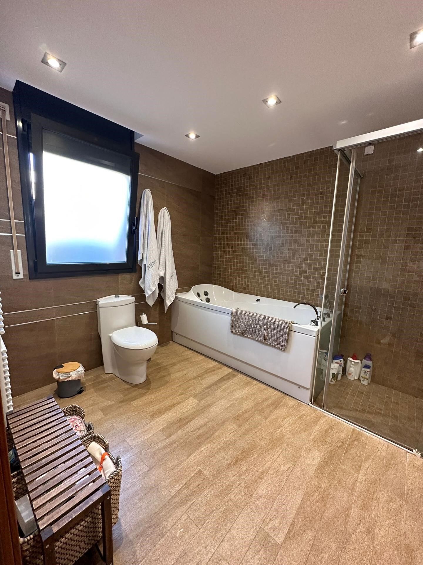 Chalet with plot of 950m2. It consists of 3 floors with a beautiful garden and swimming pool.~Basement floor with parking, multipurpose room and bedroom with bathroom.~Very spacious ground floor with kitchen, dining room, pantry and washing machine.~* Bedroom 1 of 18m2 plus toilet,~* double room 2 of 15m2 plus dressing room and toilet~* bedroom 3 of 12m2 with desk.~All rooms have fitted wardrobes.~First floor with two rooms of 20m2 each and an outdoor terrace of 50m2.